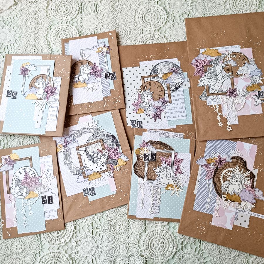 Не знаю, как вы, а я люблю готовить подарки задолго до Нового года. И в последние года три готовлю адвенты со скраповыми подарками для скрап-подружек. В этот раз решила не разыгрывать, не то настроение. Есть человек, которого очень хочется порадовать и скрасить ожидание праздника. А штампы ПСК прекрасно в этом помогли. У меня собралась отличная коллекция единорогов, а в этом году они очень уместны.