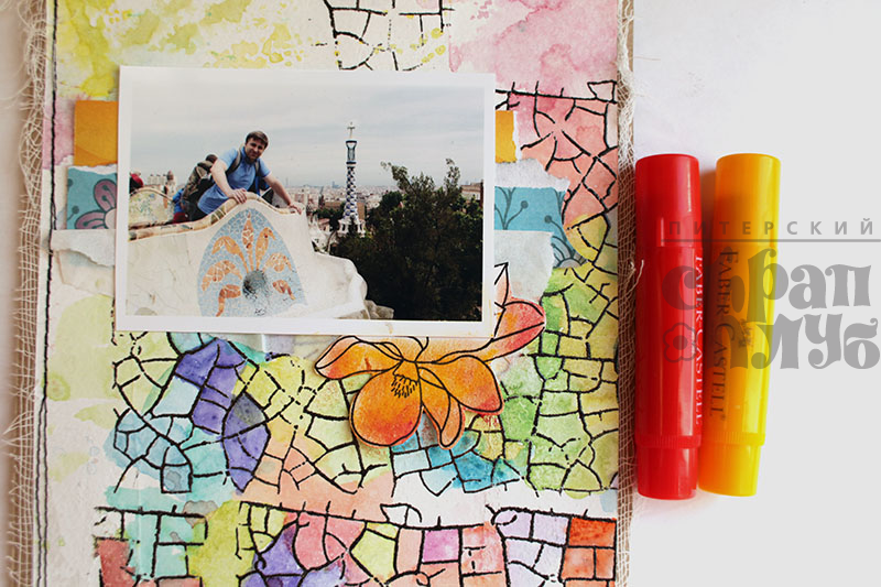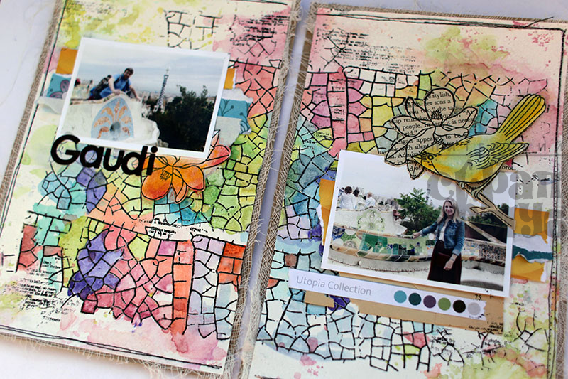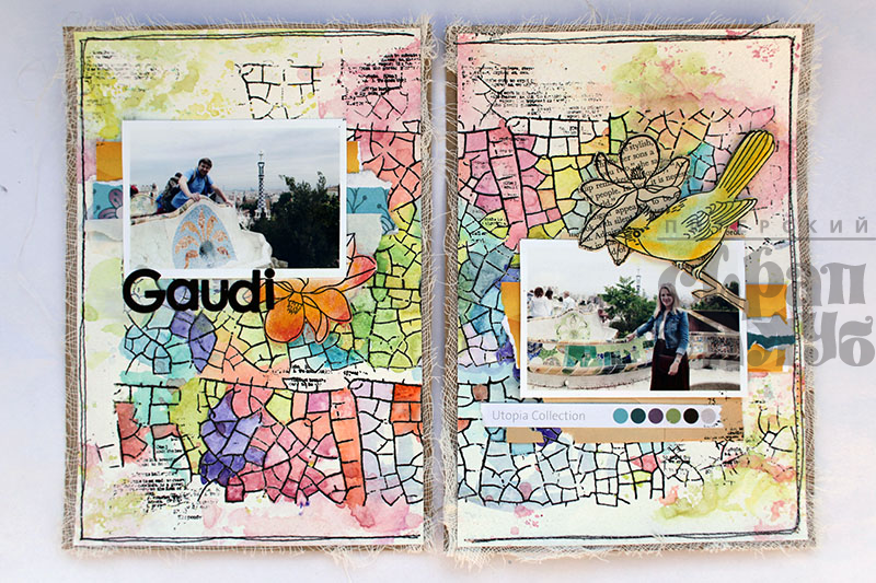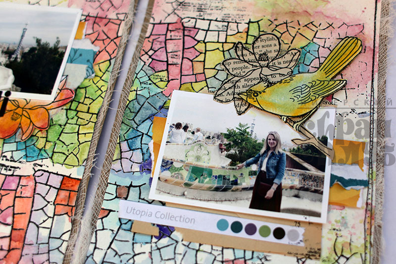 Перелетные птицы продолжают свое яркой путешествие. Сегодняшний разворот расскажет вам об одном из самых вдохновляющих мест на замле – парке Гуэль в Барселоне. Если кто-то вдруг не знает, я поясню, что автор и создатель этого чуда Антонио Гауди. Он мечтал создать город-сад, но на деле эта идея оказалась утопичной, и теперь в списке ЮНЕСКО значится прекрасный парк, попадая в который чувствуешь себя ребенком в сказочном городе. Одной из основных тем в декоре парка являеется мозаика, которую я и захотела изобразить!
