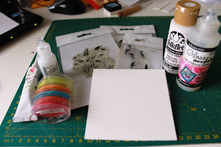 При помощи штампов и чернил ставим на «плитках» разные оттиски: