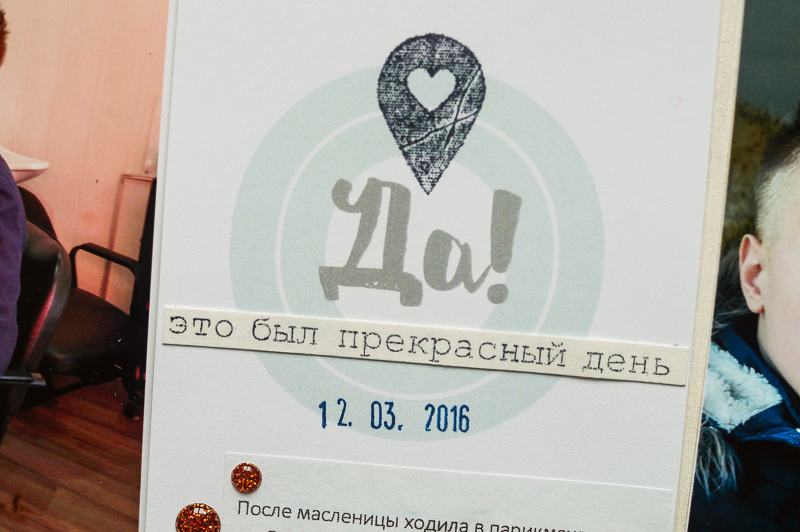 С прошлой недели у меня перешел протектор для странички – недолго думая оформила фотографии с Масленицы, взяв понравившийся скетч и немного украшений. Основной декор составили штампы из набора «Краски будней» («Оно того стоит», «Ого», «Выходной»), «Просто жизнь» и «Выбери свой день».