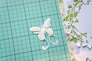 Приступаю к открытке. Склеиваю слои подложек и приклеиваю вырубку в виде веточек.