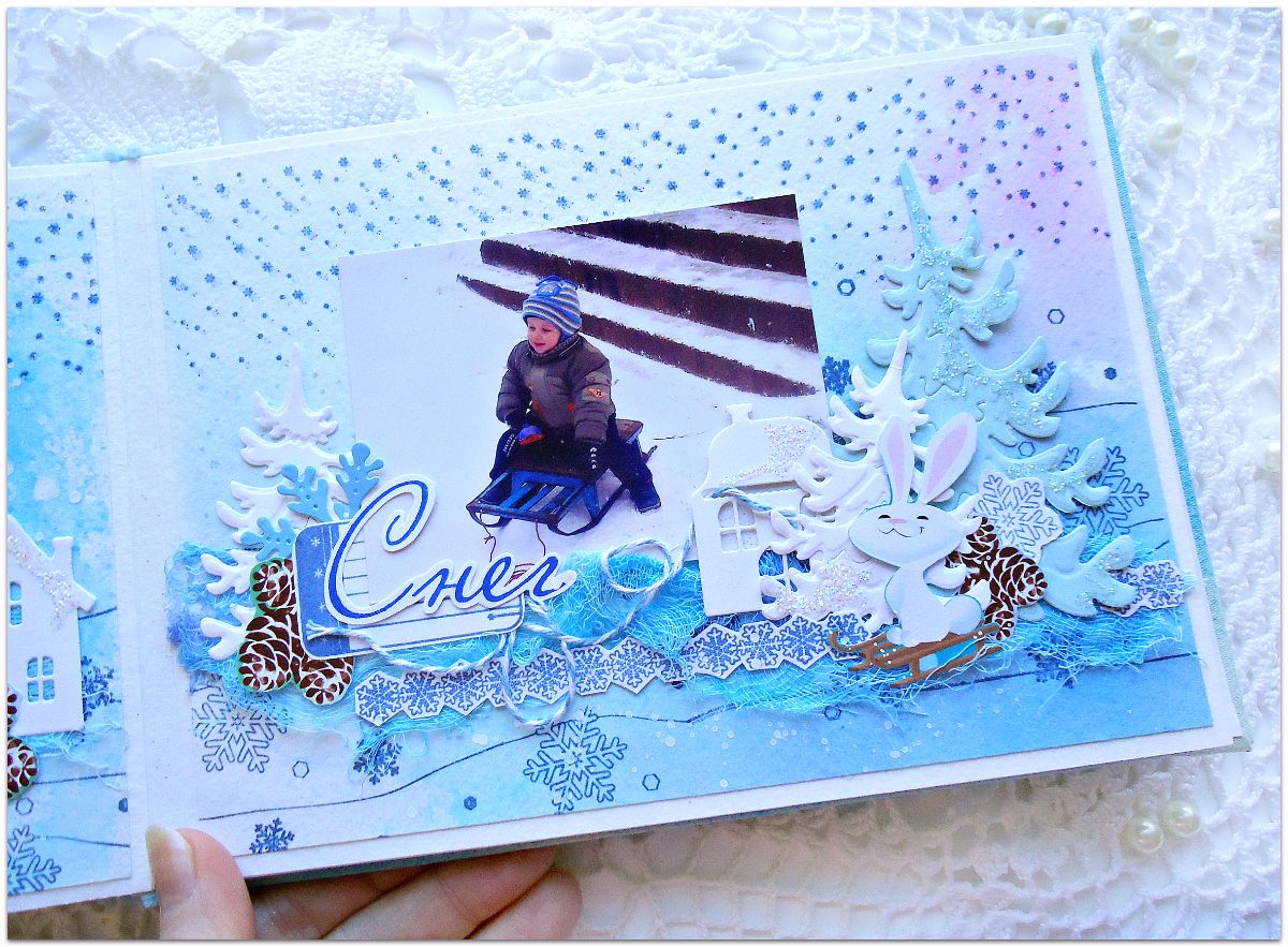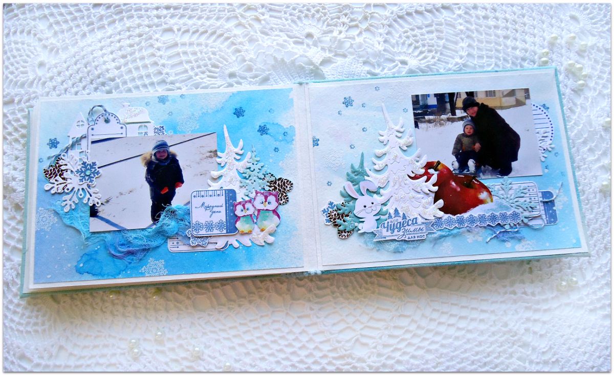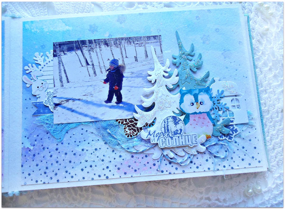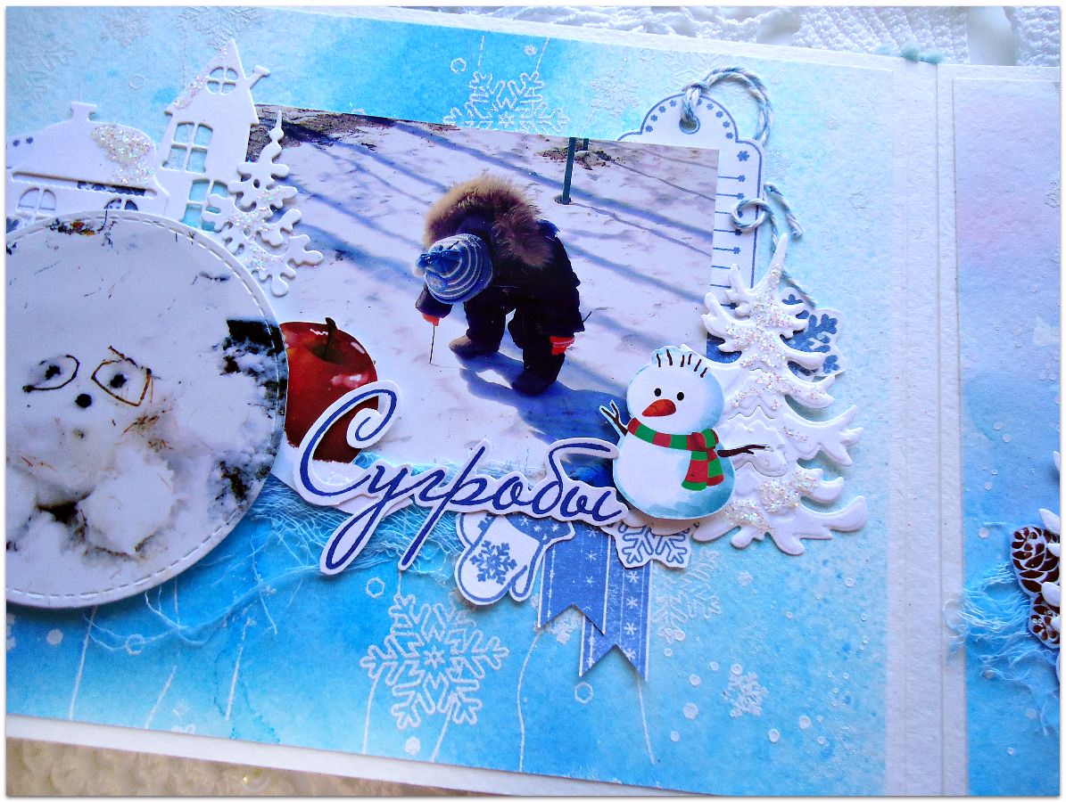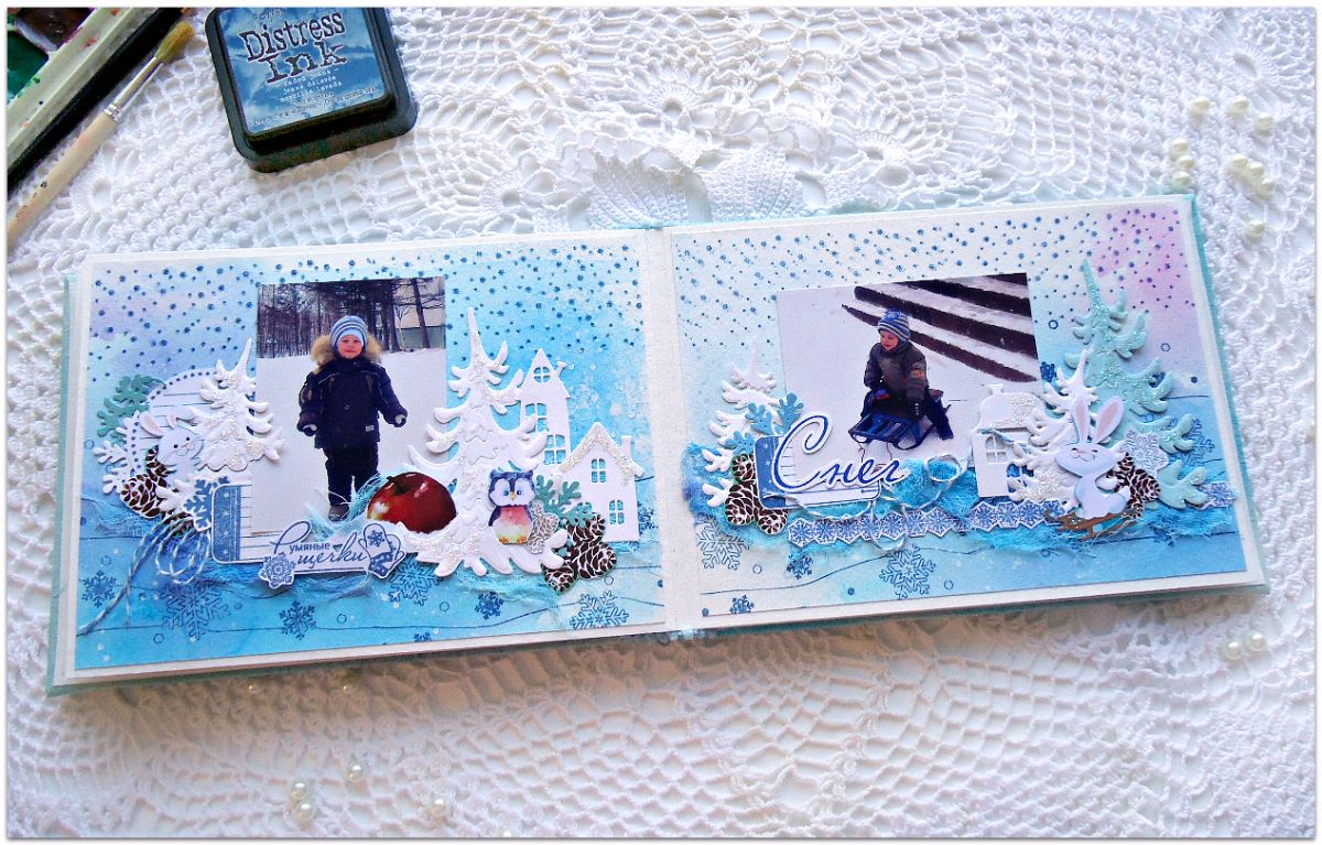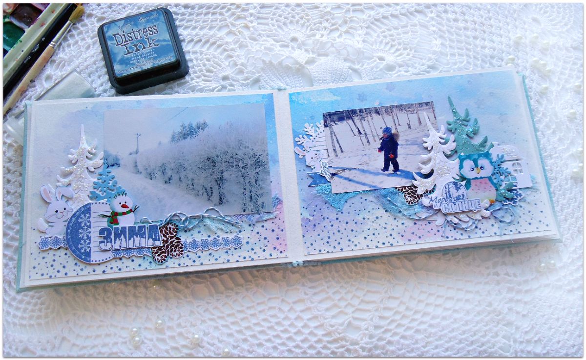 Листая альбом, понимаешь, что Морозные дни не помеха счастливому детству, а имея всего лишь акварель и штампы можно получить красивый альбом ))