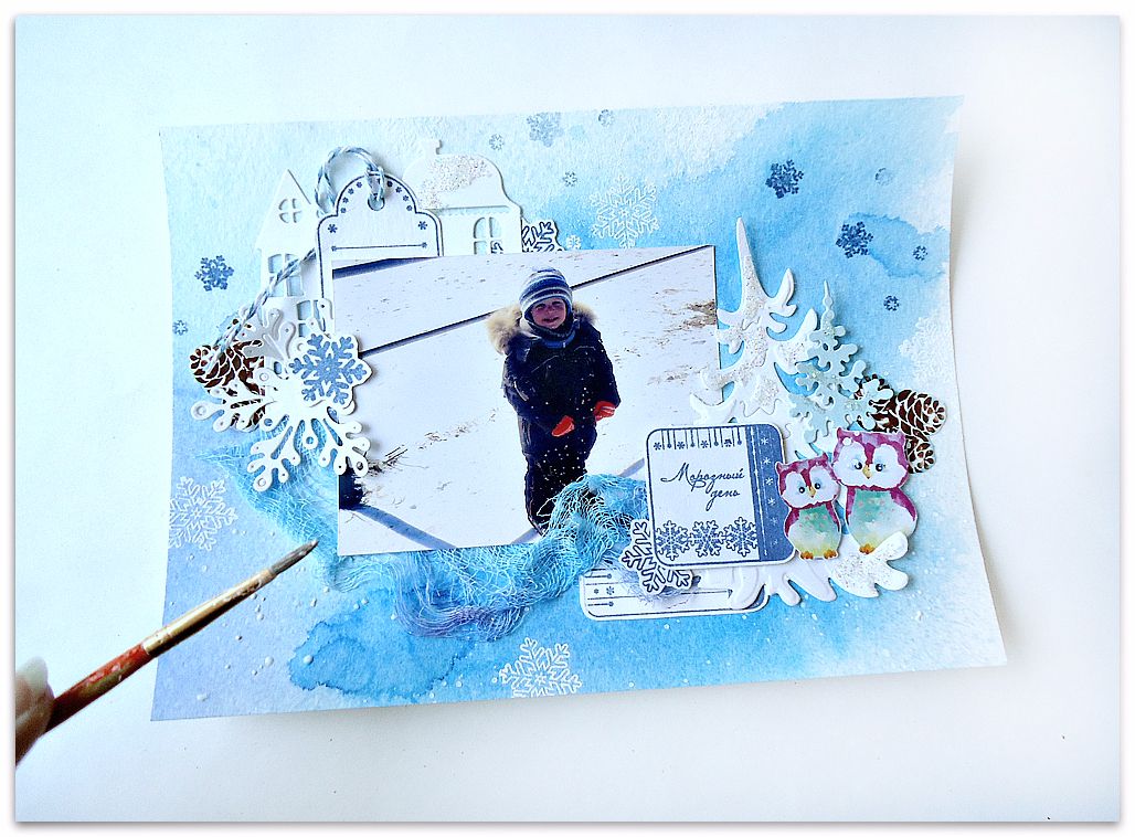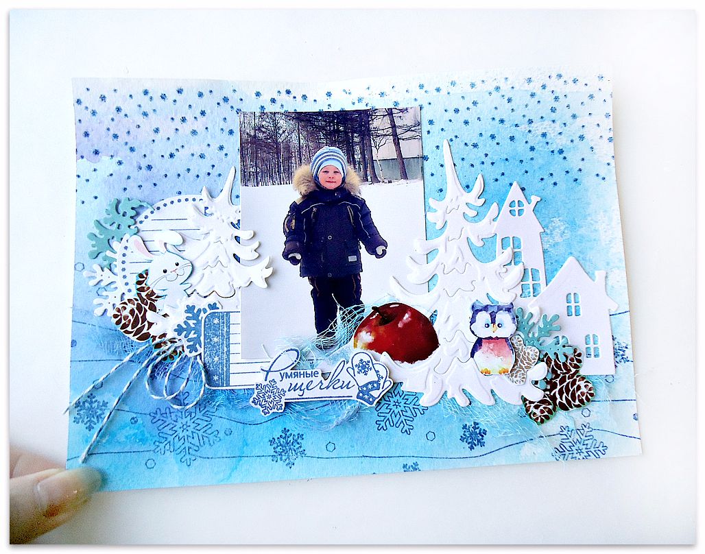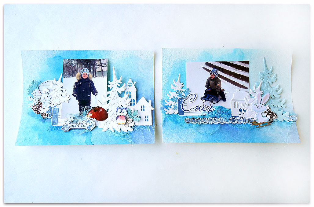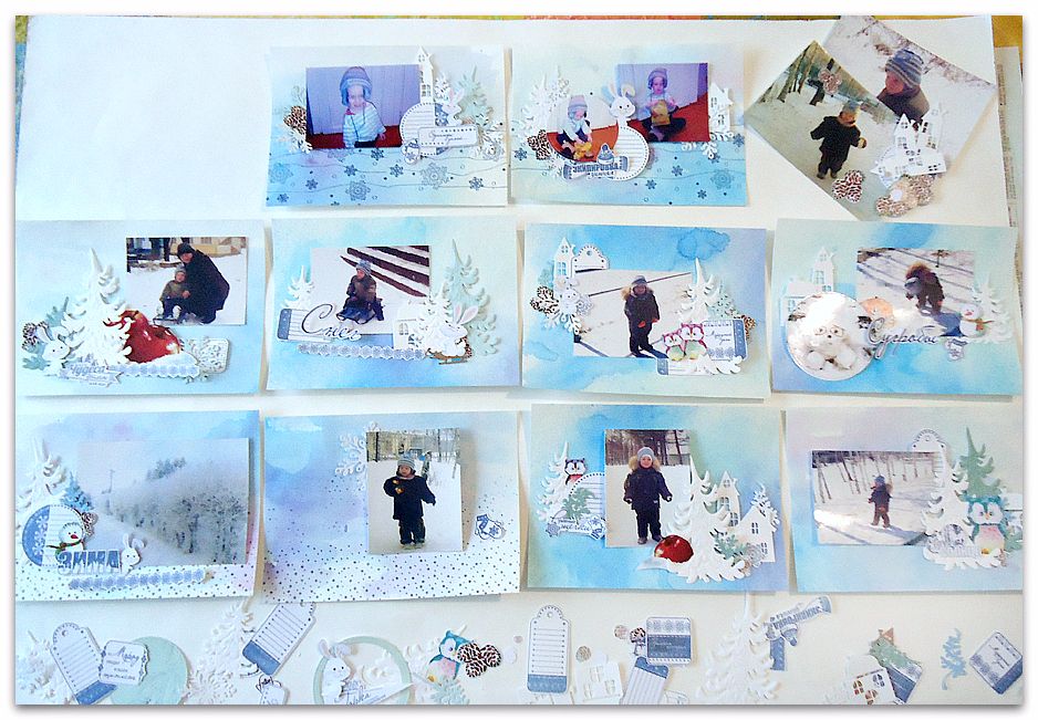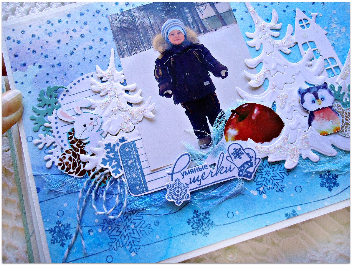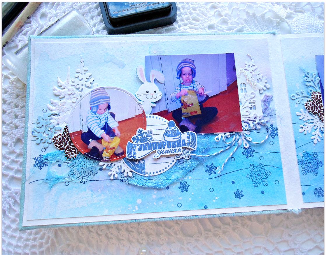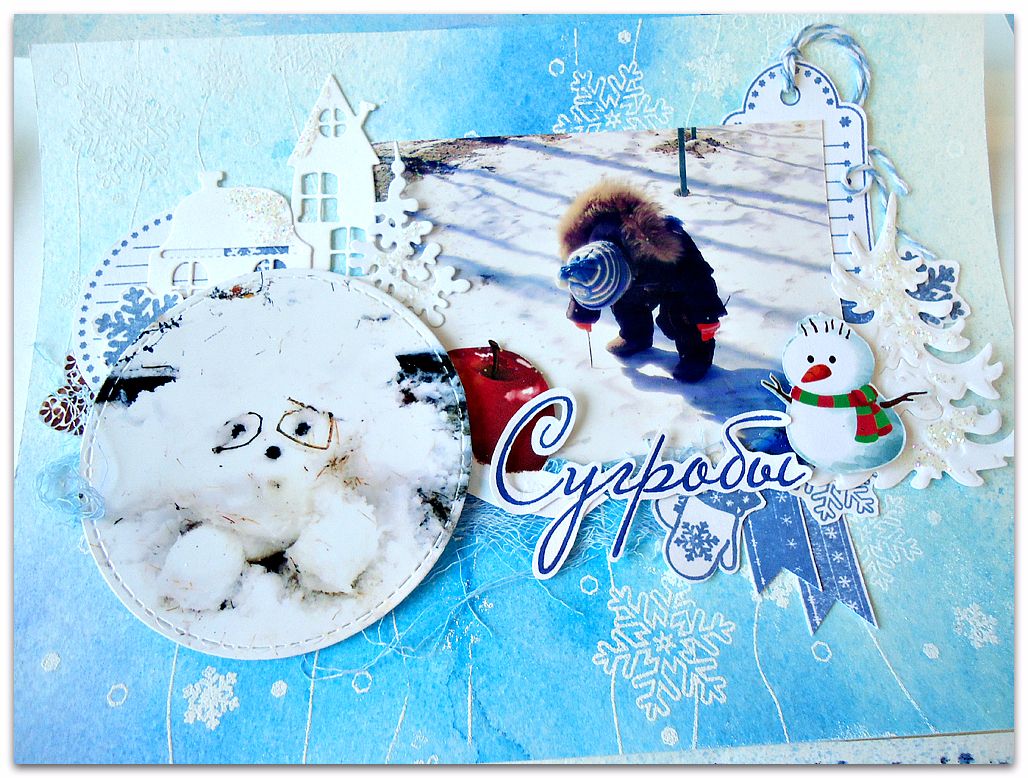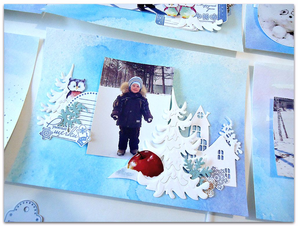 Листая альбом, понимаешь, что Морозные дни не помеха счастливому детству, а имея всего лишь акварель и штампы можно получить красивый альбом ))