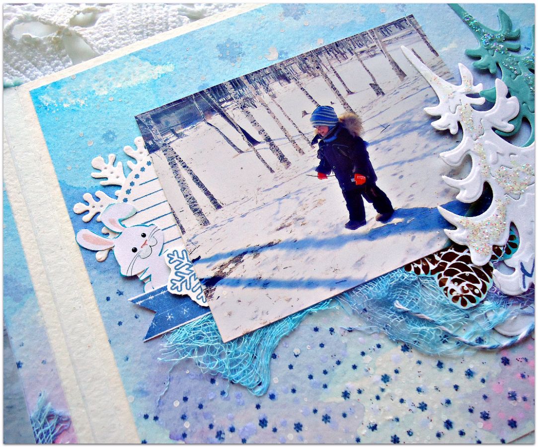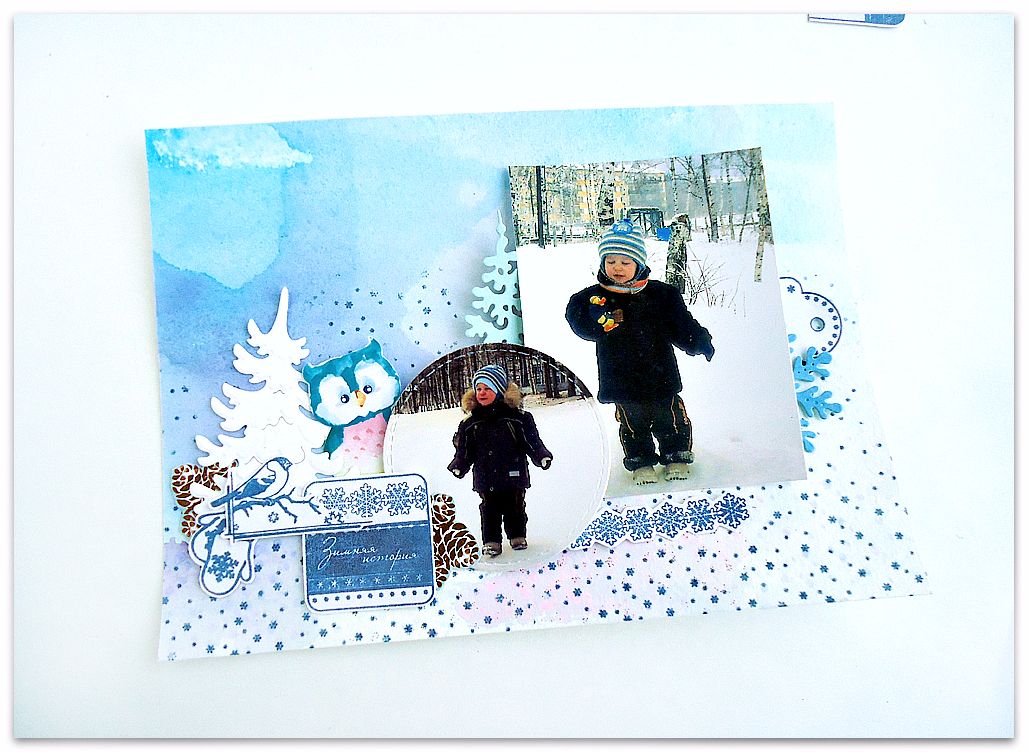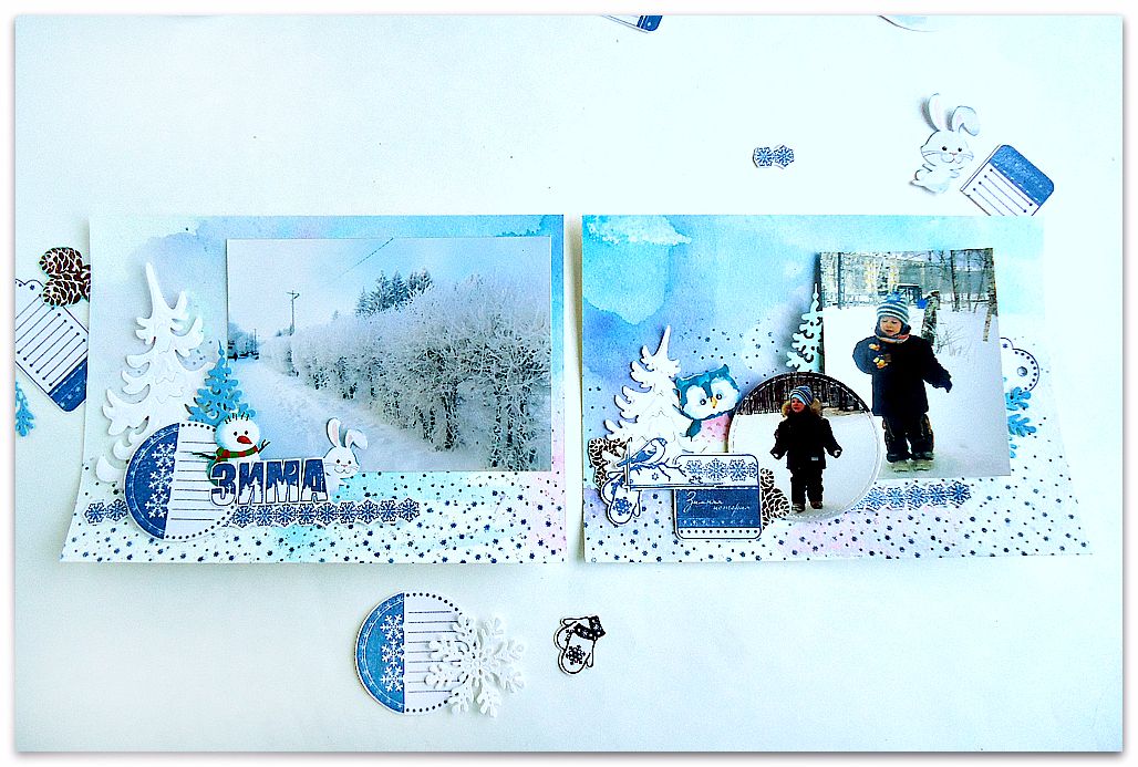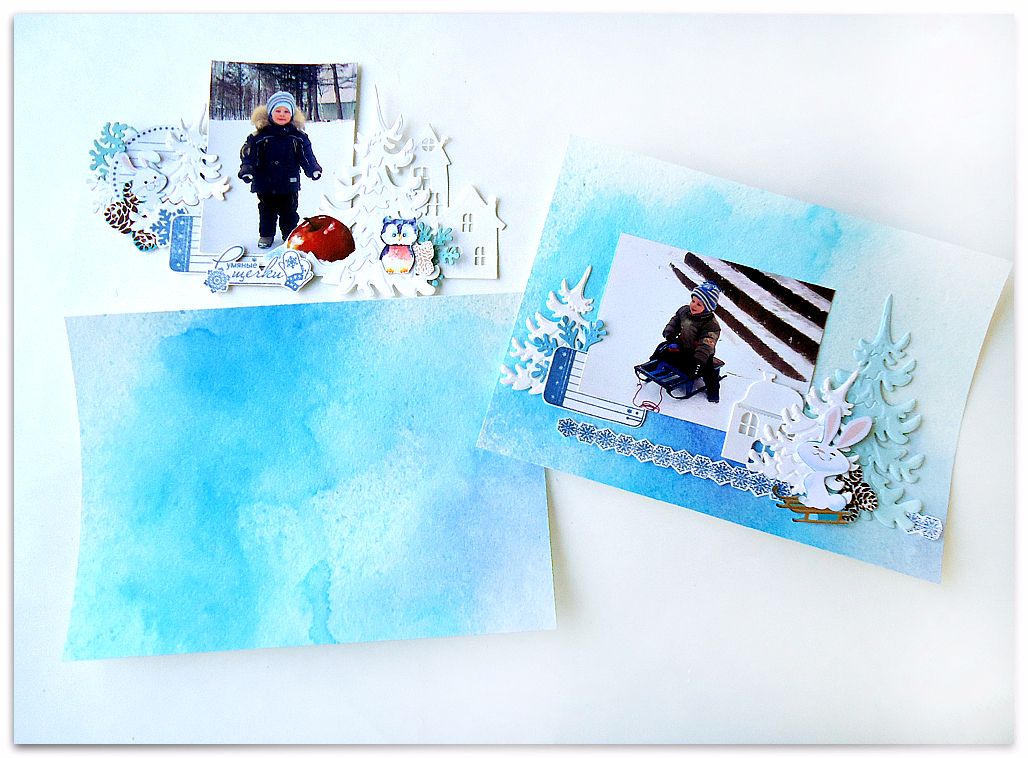 Тема альбома - зима, будем оформлять фото малыша и его первые прогулки. Альбом задуман достаточно простым, без скрапбумаги, кучи подложек и обильного декора. Основными моими помощниками станут акварель и штампы.