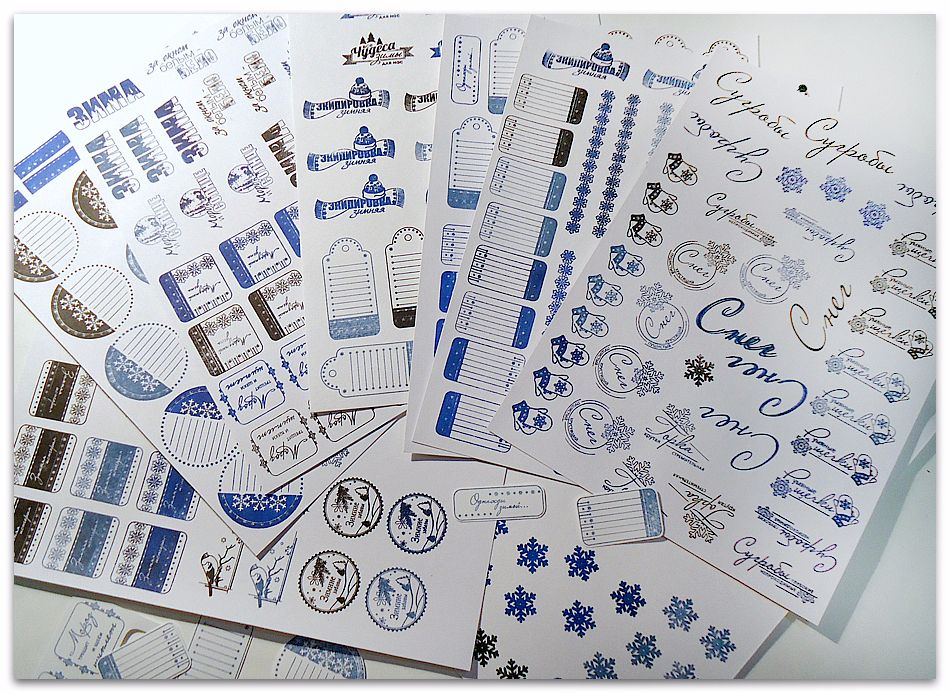Набор штампов к альбому "Синий иней" дополнила некоторыми фразами на зимнюю тему и наштамповала тремя оттенками чернил:
