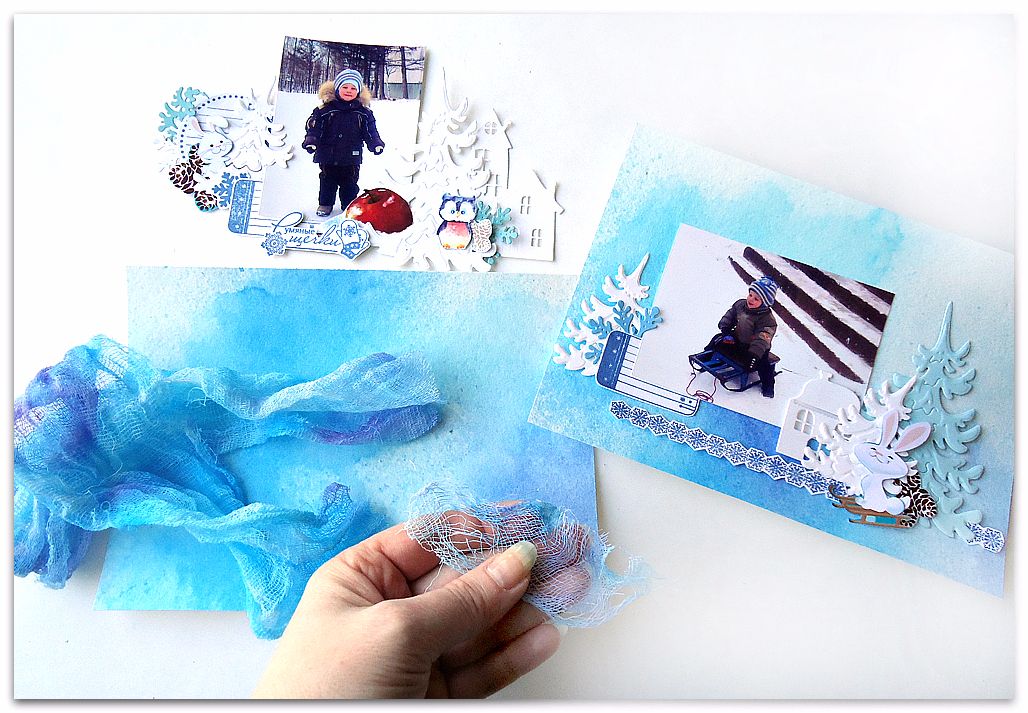 Зима у нас в самом разгаре, снег и холода окутали землю, на улицу выходить совсем не хочется, а вот любоваться из окошка, с удовольствием! Вышел утром на улицу все вокруг такое туманное, голубое... Оп! Вот и первая идея - будет альбом с акварельными фонами, с переходом голубых оттенков! А тут и вторая. И вот он готов - альбом про акварельную зиму.