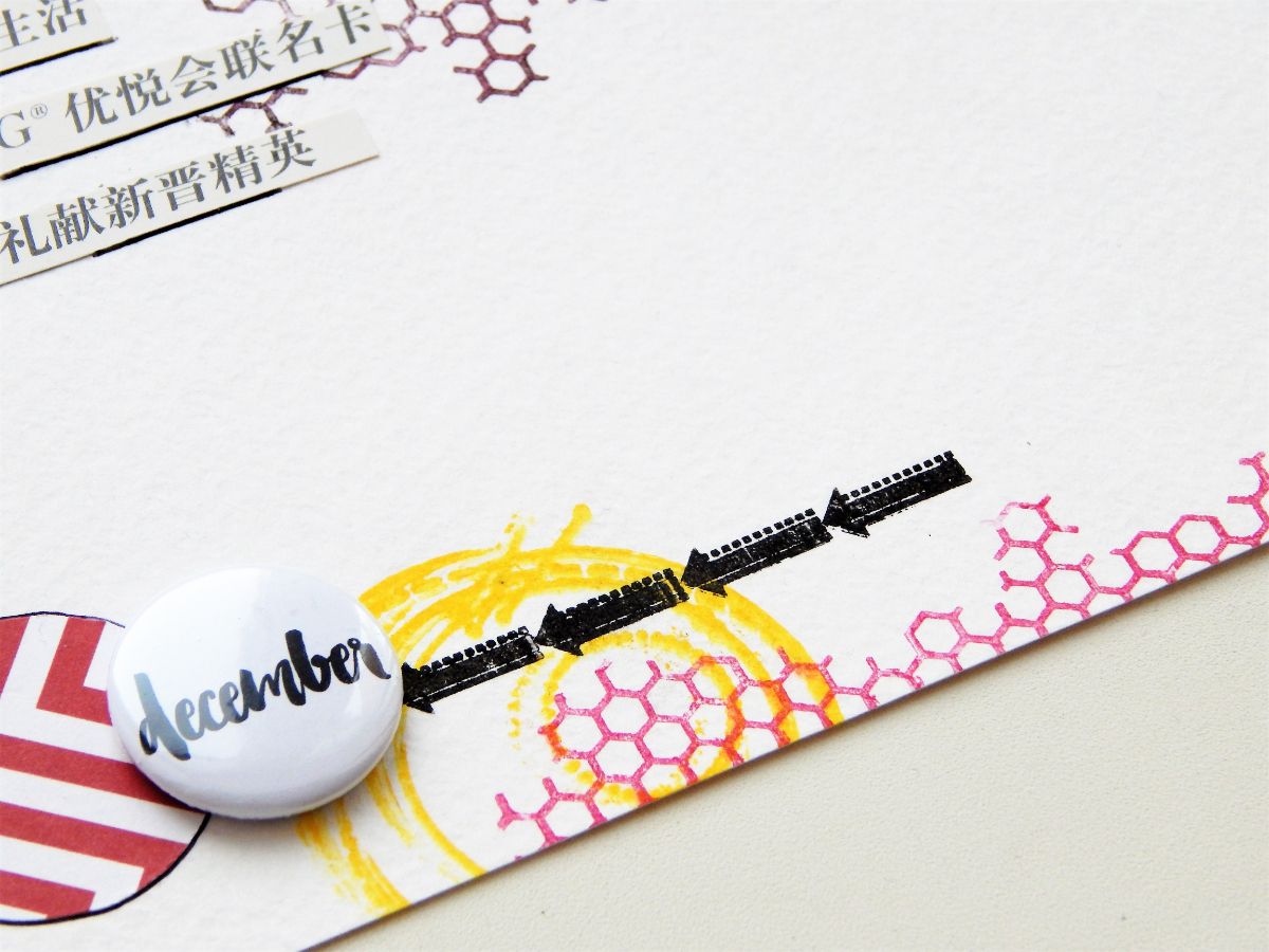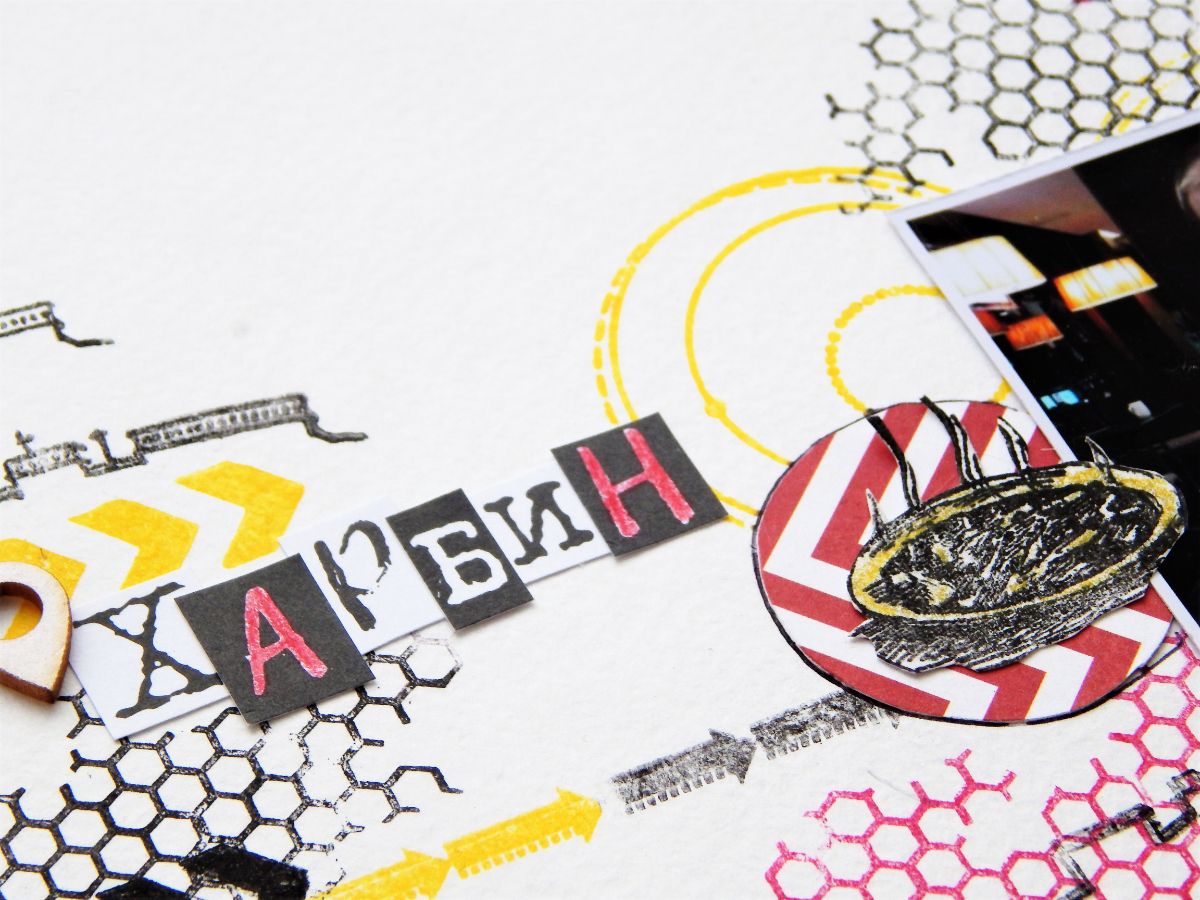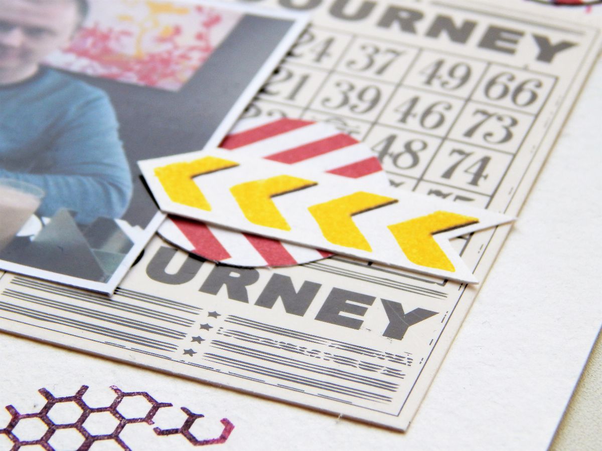 Я использовала штампы "Ев.Крыша" и стрелки "Линия стрелочек" и "Ряд стрелок", что и на первой странице.