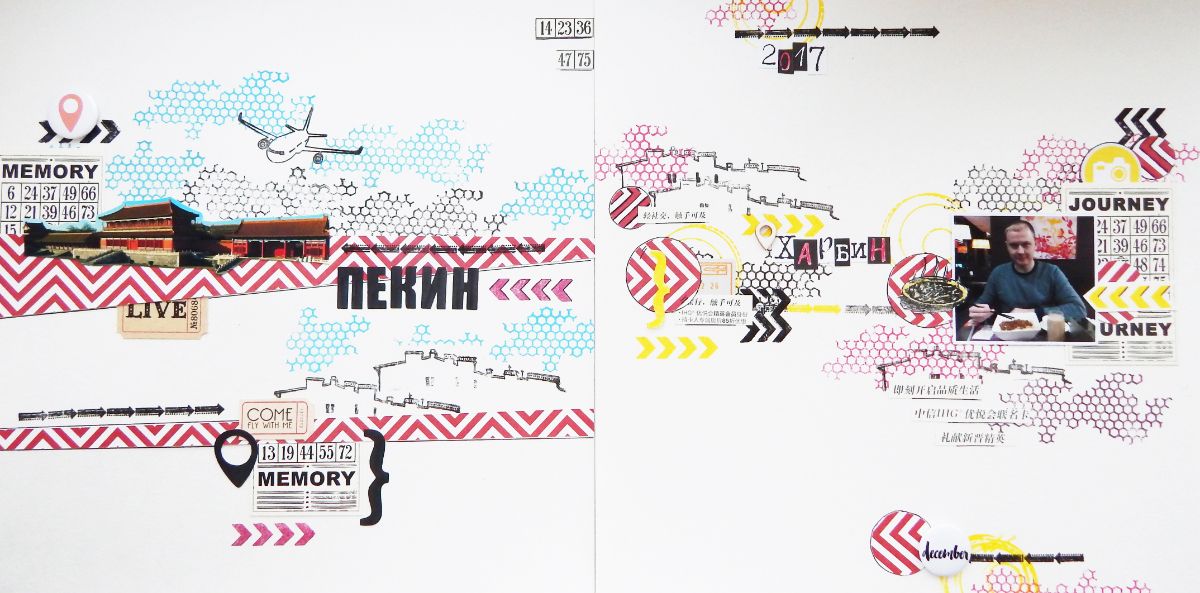 Вот так эти странички выглядят вместе. На мой взгляд, благодаря штампам мне получилось сделать одну серию про путешествие в Китай.