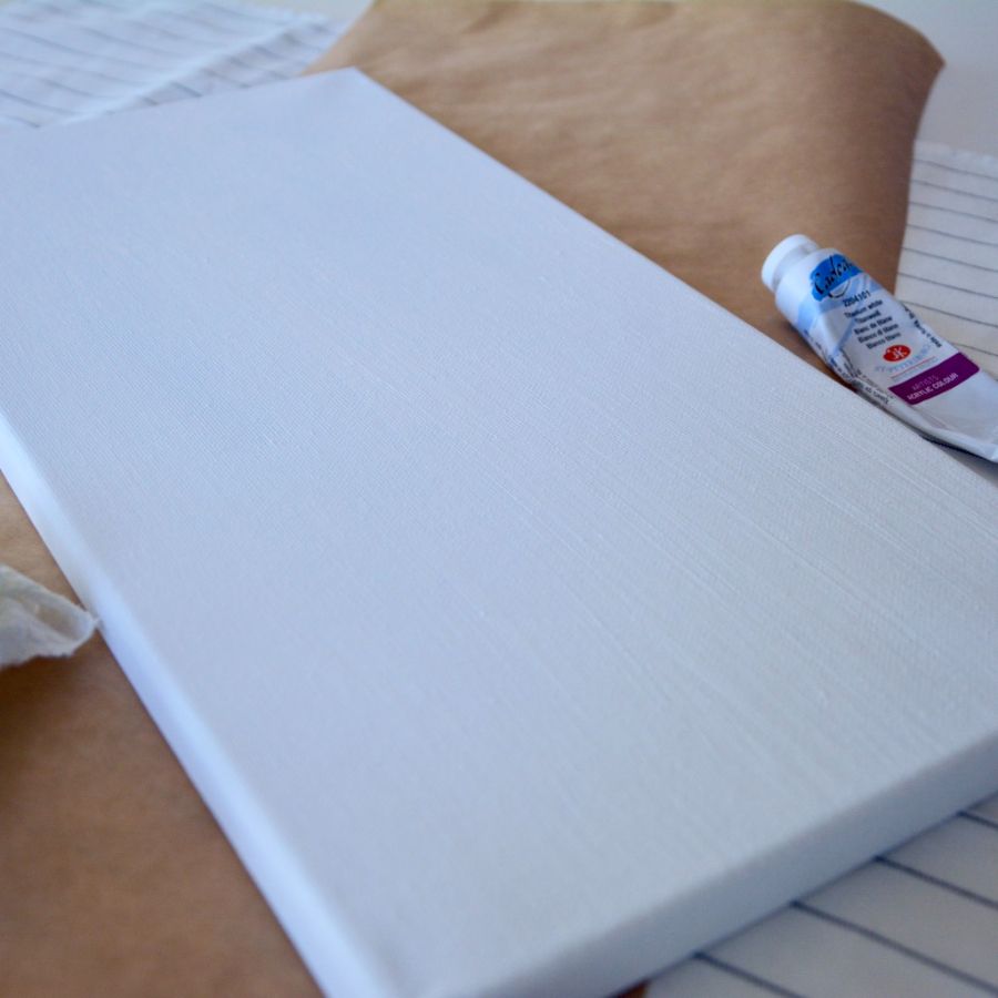 Холст может быть любым - хлопковым, льняным, на подрамнике или на картоне. Но какой бы из вариантов вы не выбрали, холст нужен либо уже грунтованный, либо вы должны его загрунтовать. Посколькую композицию я наметила себе светлую, то поверх грунта покрываю холст еще и слоем белой акриловой краски. Наносить краску можно кистью, мастихином и даже тряпичной салфеткой. Все зависит от вашего замысла - каким в итоге должен получиться стартовый слой краски - ровным или фактурным. Так как я планирую сделать несколько оттисков штампами непосредственно на холсте, то мне необходима относительно ровная поверхность. Белой краске нужно немного времени, чтобы подсохнуть. А пока подберем необходимую палитру.
