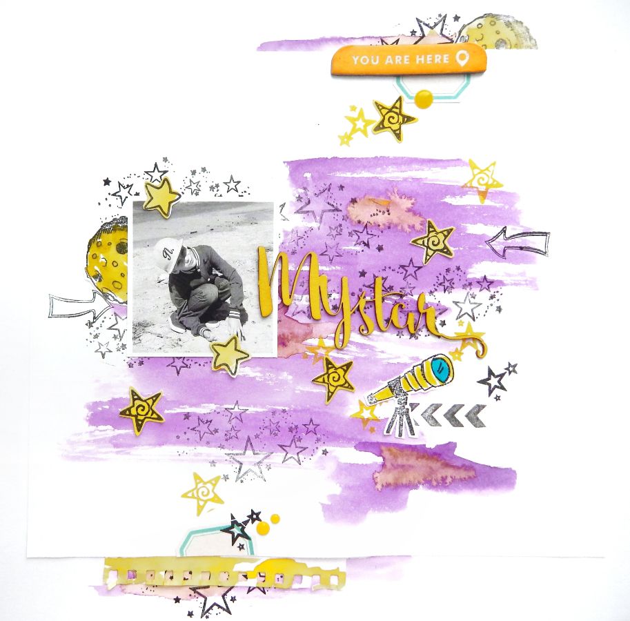 Так получилось, что я никак не могла запомнить какого числа День Космонавтики, пока 8 лет назад не родила сына в этот день. Теперь, я всегда стараюсь делать работы с сыном, добавляя щепотку)) звезд, вроде как в тему. Но я давно думала сделать по-настоящему космическую страничку. И вот что у меня вышло.