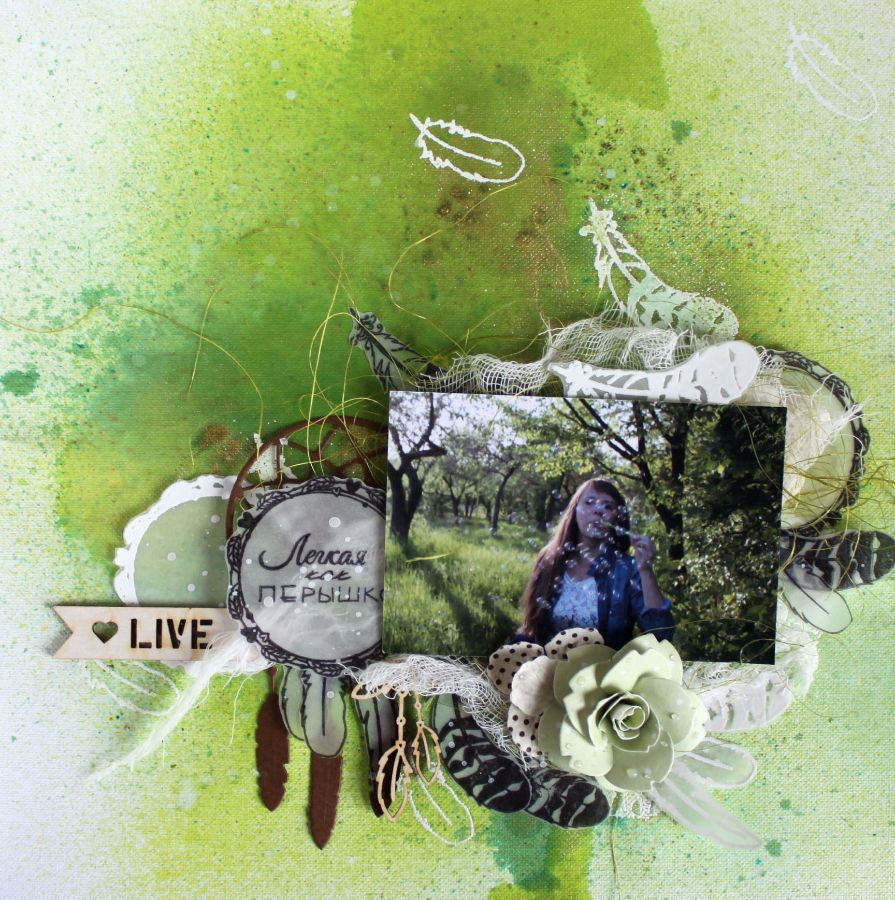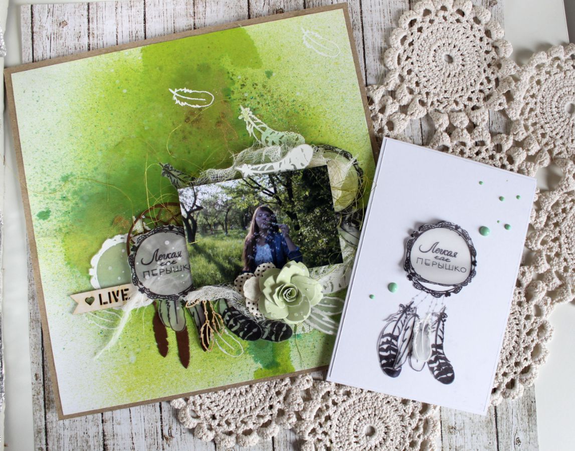 Вот за одним таким разом меня и подловили))) и я решила это заскрапить. Что может быть легче за перышко? Правильно, только само перышко. Для декора я выбрала набор штампов "Легкая как перышко". Я просто в него влюбилась)) Он очаровывает. Все эти перышки и надписи ... ммм