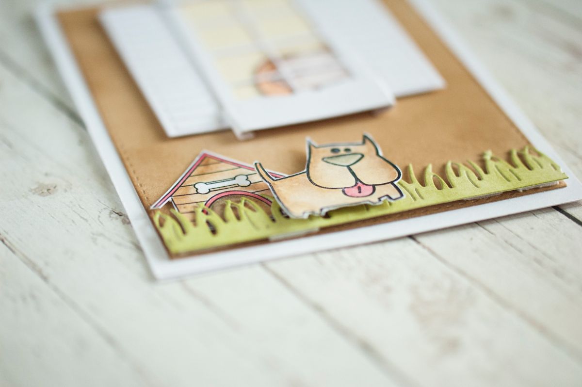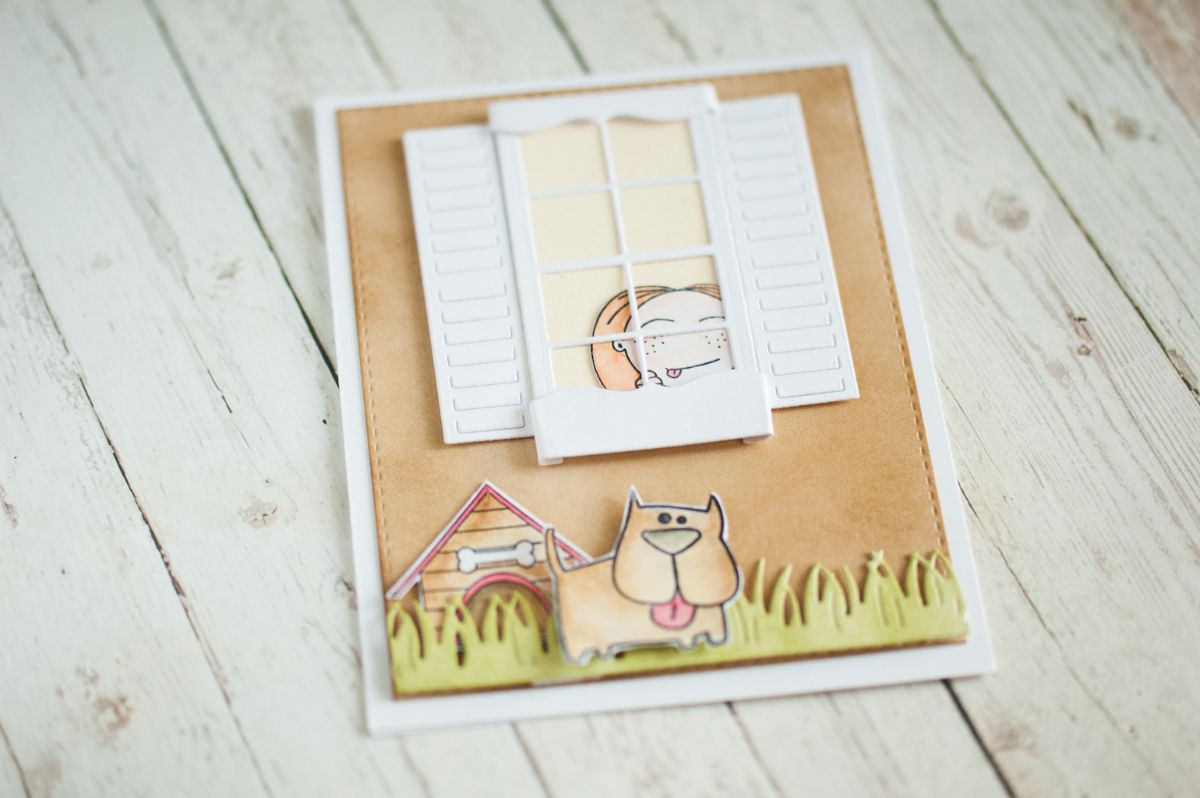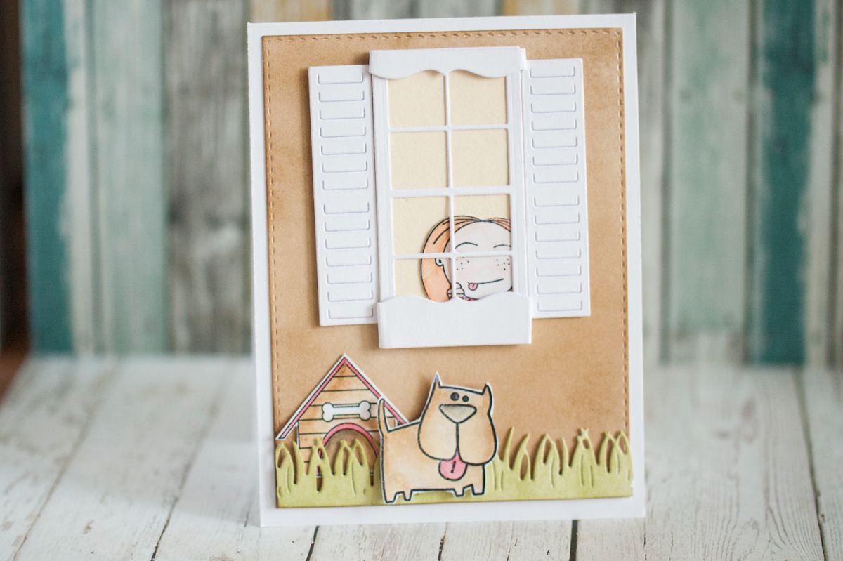 Вторая открытка про Дружка, который ждет, когда же его верная подружка Катя выйдет гулять.