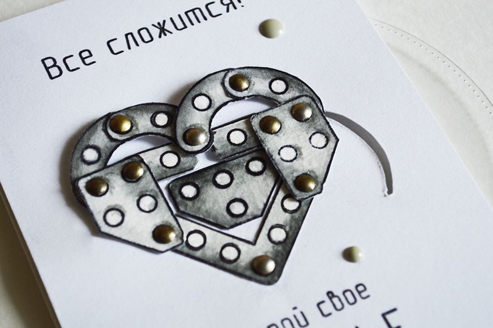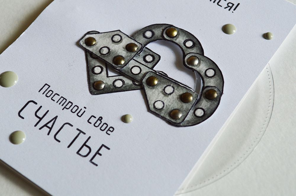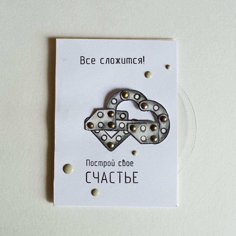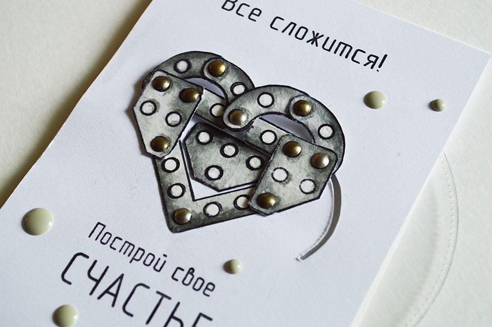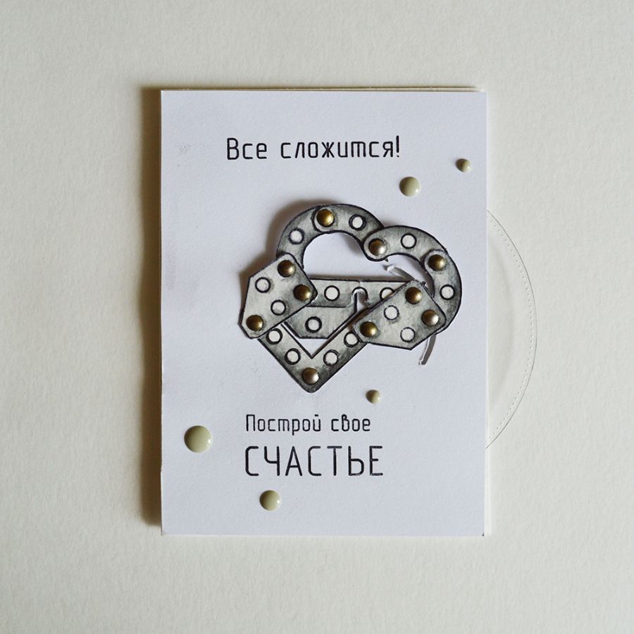 Если потянуть центральную фигуру в бок, то она начнет вращаться и в окошке пявляются другие элемены конструктора, которые не подходят. Этим я символично изобразила надпись на открытке "Жизнь как конструктор", ведь в жизни нам часто приходиться делать сложный выбор, и важно понять, что твое, а от чего следует отказаться: