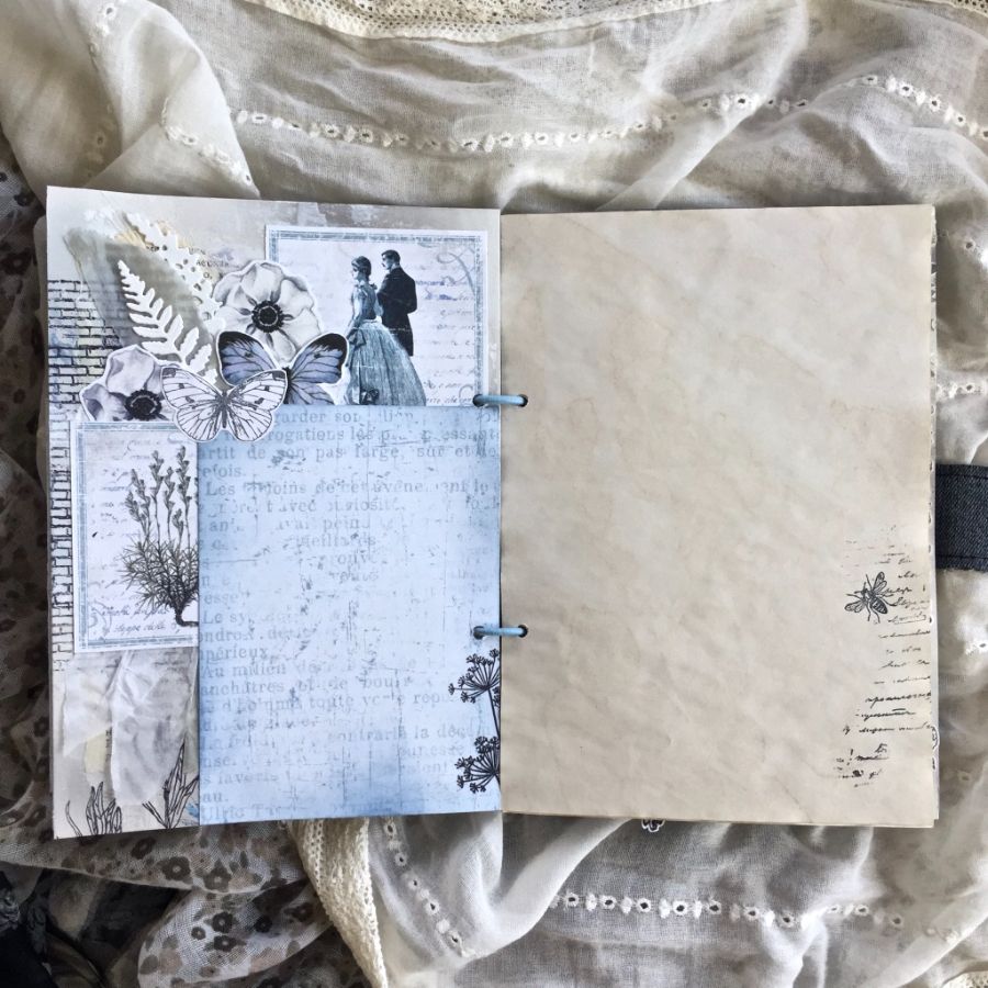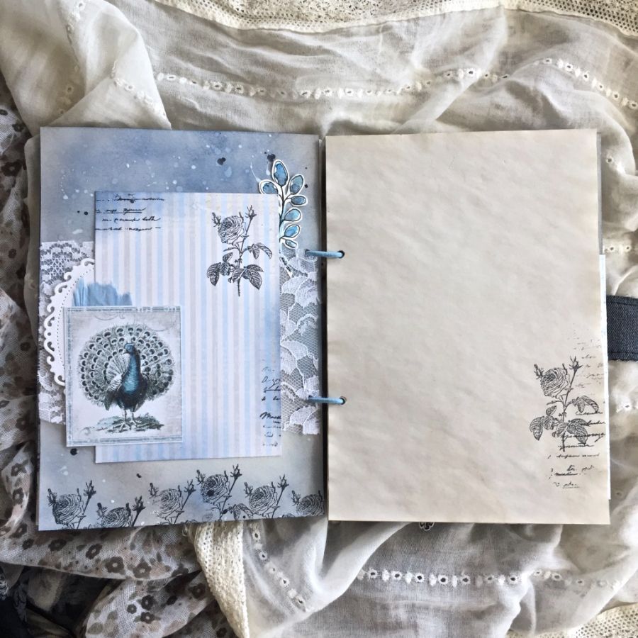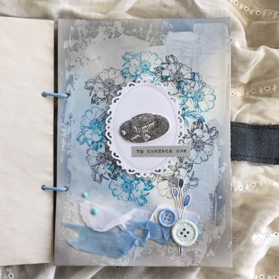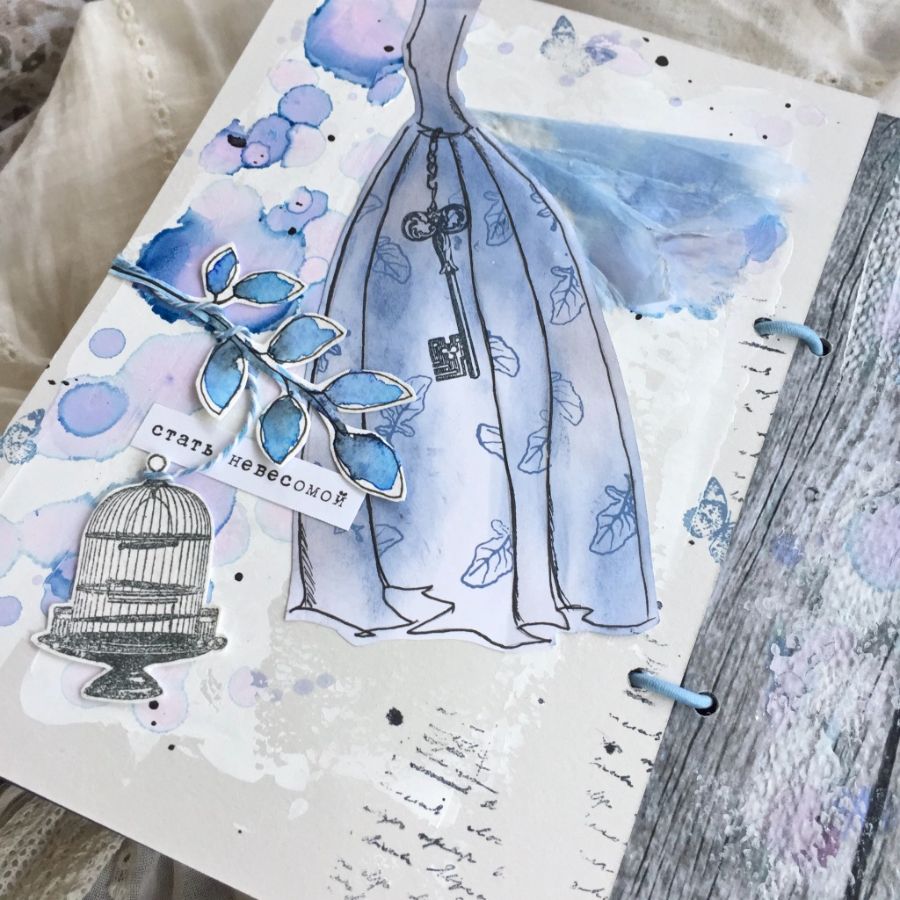 Блокнот получился фантазийным. Судя по цветовой гамме - приглушенным и малоэмоциональным. Но если калитка в сад приоткрыта и хозяйка готова беседы беседовать, то все непонятное становится очевидным.