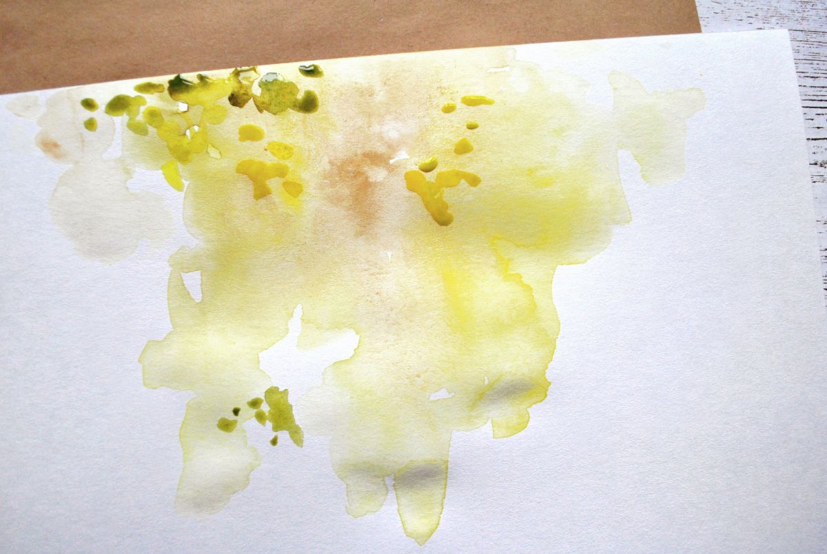 Теплый и холодный желтые оттенки, немного зелени - свободно и смело рисуем фон для верхней части странички.