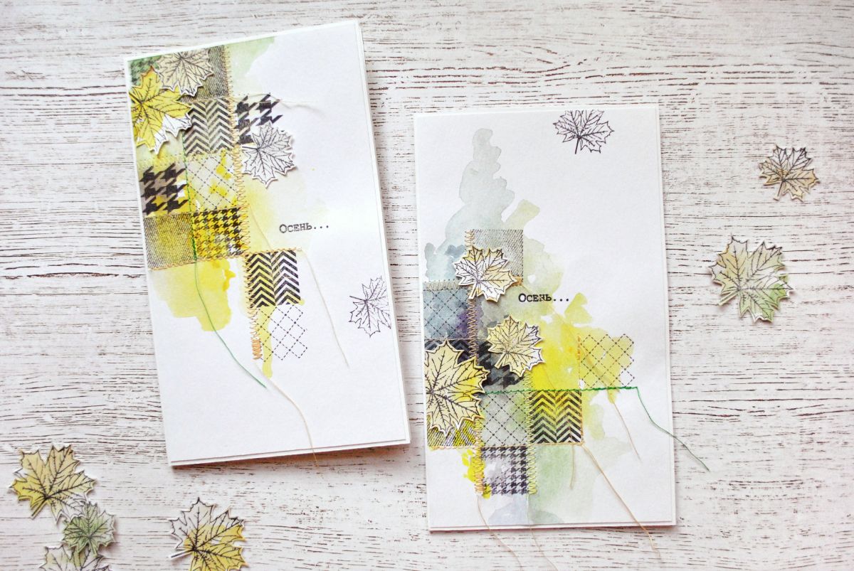 В настроении странички я сделала и две открытки с теми же штампами: