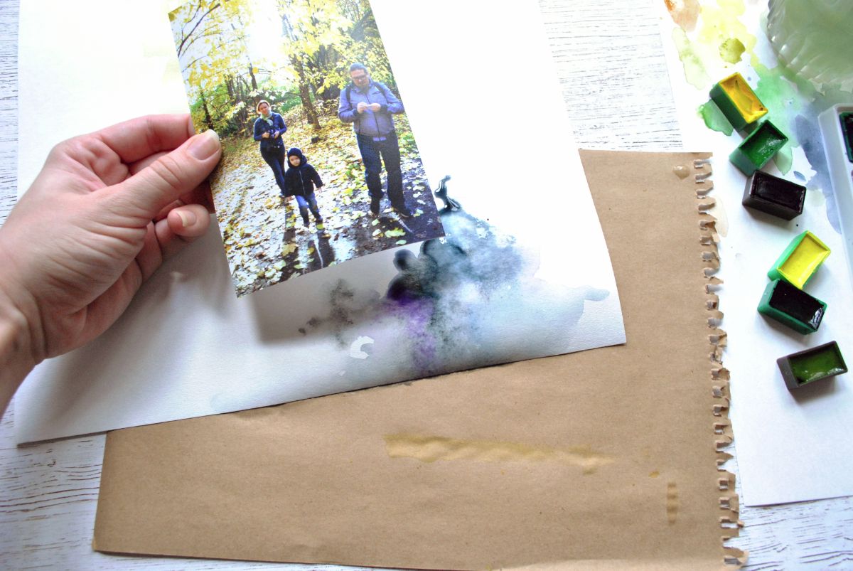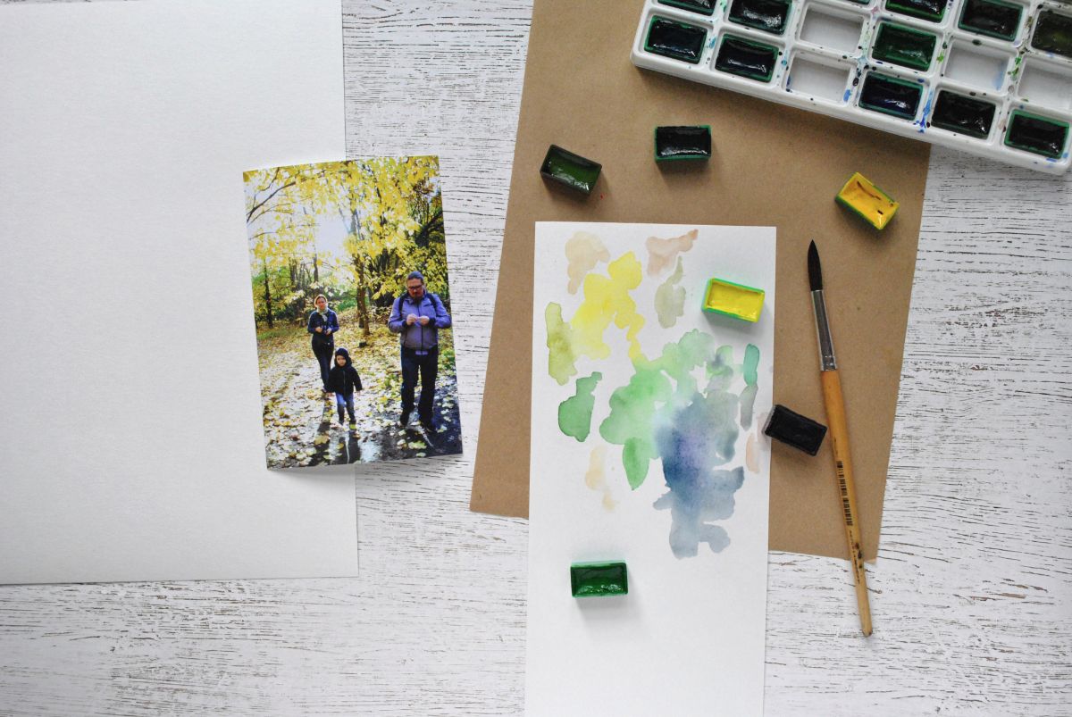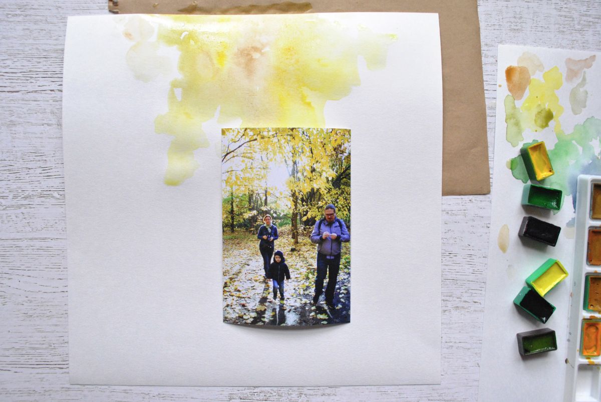 Цветовая основа странички - акварельный фон. Для начала я подбираю краски в тон цветам на фото.