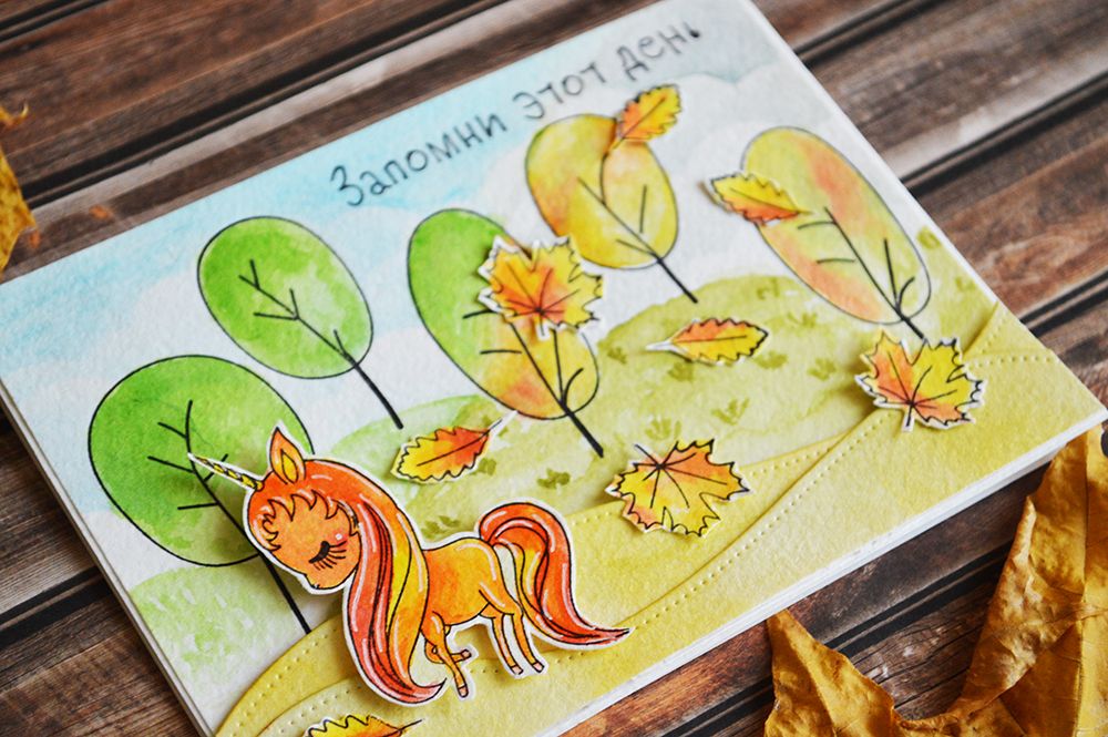 Вторая открытка - размышления на тему "образ осени". Я решила представить ее в виде... единорога!