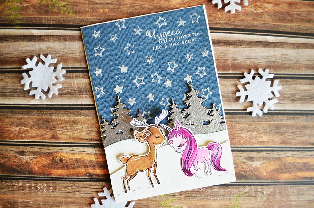 О зиме и о чуде! И, действительно, если очень сильно верить, то можно встретить и единорога в лесу! Что и удалось сделать милому олененку!