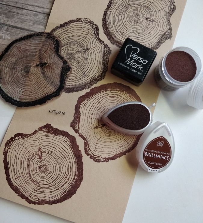 Не обязательно иметь много цветных пудр для эмбоссинга если у вас есть пигментные чернила и прозрачная пудра. Такие чернила долго сохнут и могут служить отличной заменой подушки для эмбоссинга.
