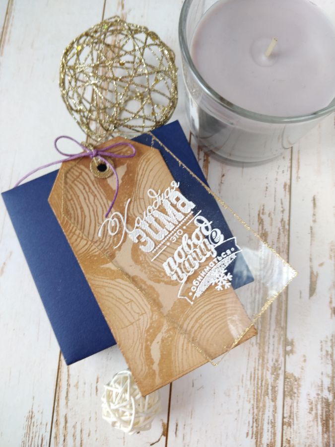 Мне так понравился штамп Древесный спил, что захотелось следом сделать еще и тег. Он наверняка пригодится, ведь больше чем принимать подарки я люблю их дарить.