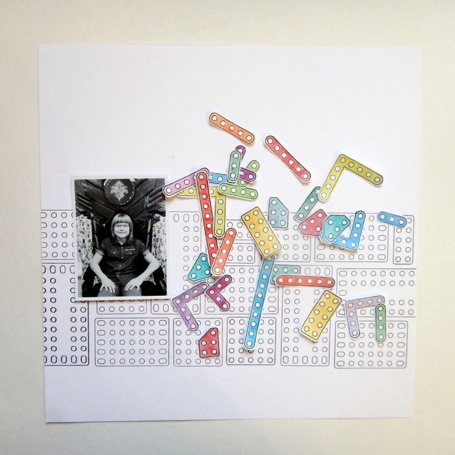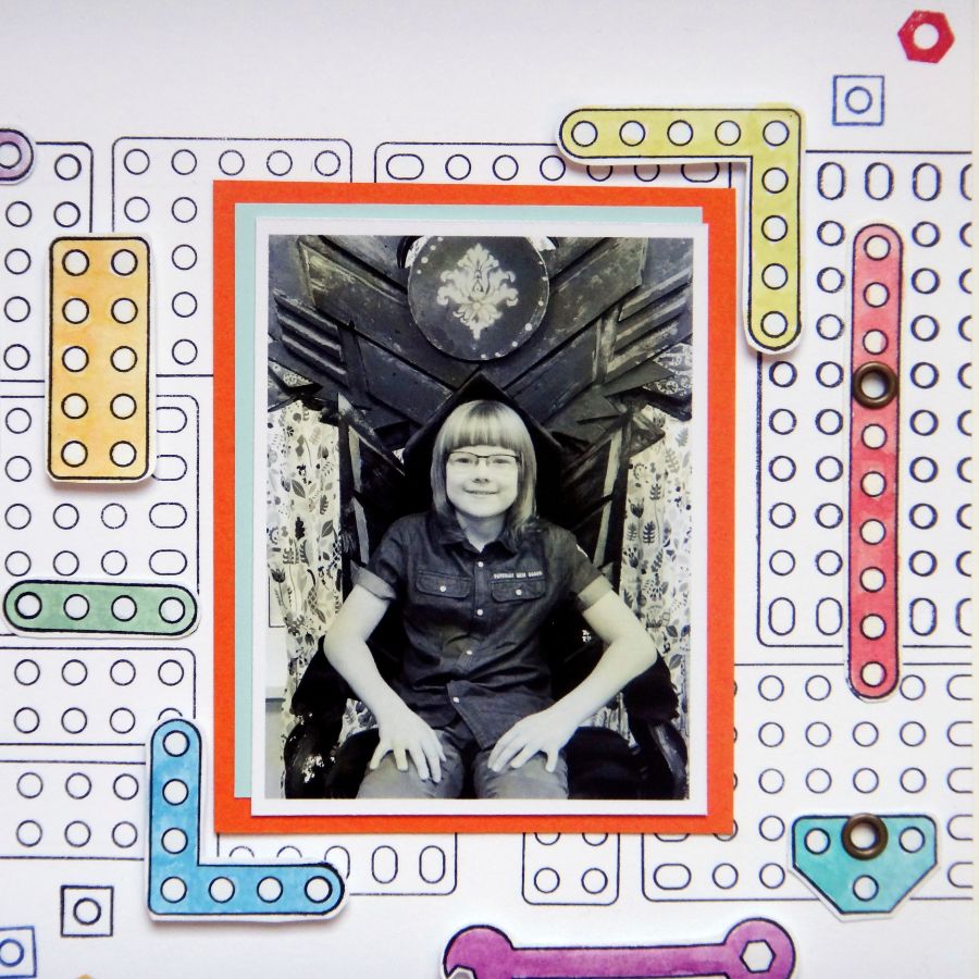 Вечная тема - мальчишки и конструктор! Штампы-конструктор - прекрасный декор для оформления детских работ и не только про мальчишек. Конструктор может быть ярким пластковым или металлическим, всё равно - собрать из него можно что угодно! Я, например, собрала страничку про сына. Хотя на моей страничке конструктор, скорее, разбросан, но именно это - реальность жизни.