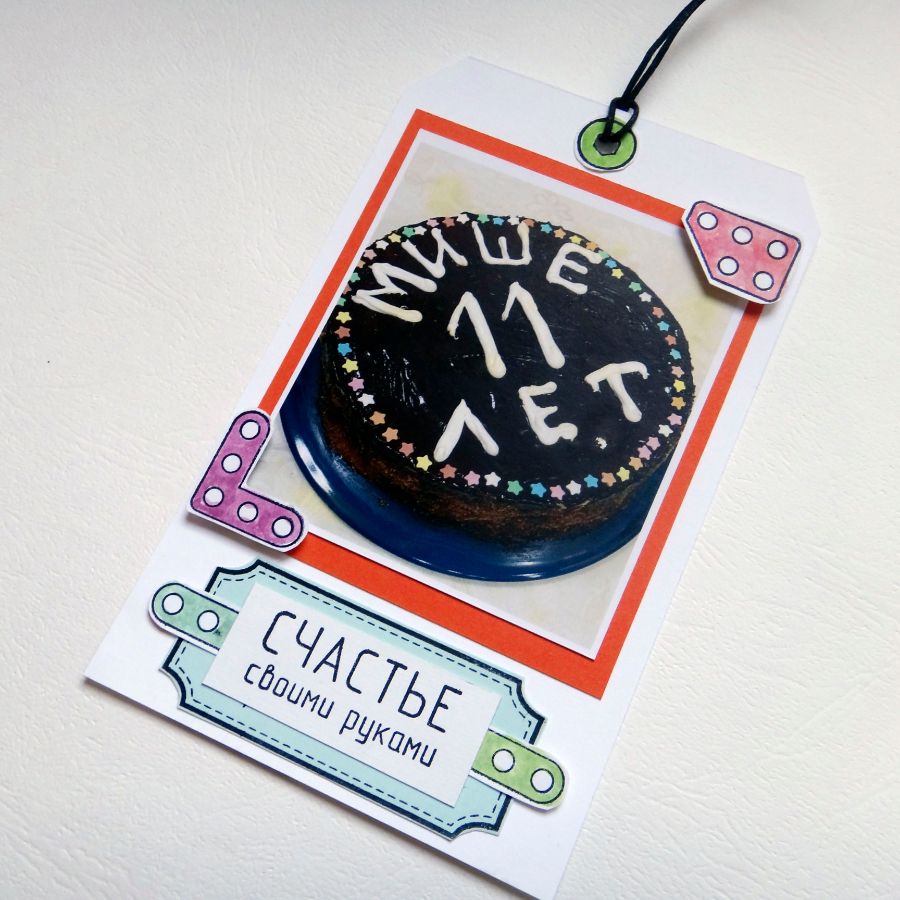 Фотография с зимнего дня рождения сына. Когда обдумывала страницу, решила распечатать еще и фото тортика, который мы делали сами. Ну и не пропададь же фоточке, она пошла на тэг.