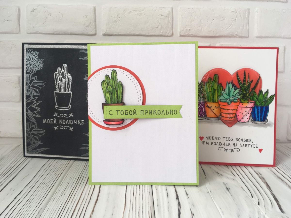 В детстве мне казалось, что кактусы — это родственники ёжиков. Девочка я была послушная, маме не перечила, колючих ёже-родственников не трогала. Потом я подросла и решила, что мама знает гораздо меньше меня. И отважно погладила выводок кактусов на подружкином подоконнике. Результатом стало 2-х часовое вытаскивание иголок из всех возможных и невозможных мест моего тела :)))). В общем я не очень люблю кактусы. Живые. Но наступила пора, когда в мою жизнь пришел скрап, а вместе с ним - красивые бумажки, ножики и ШТАМПЫ. И вот тут… тут уж я смогла победить КАКТУСЫ. Мой набор Из жизни колючек помог мне обуздать этих строптивых и «злючих» растений.
