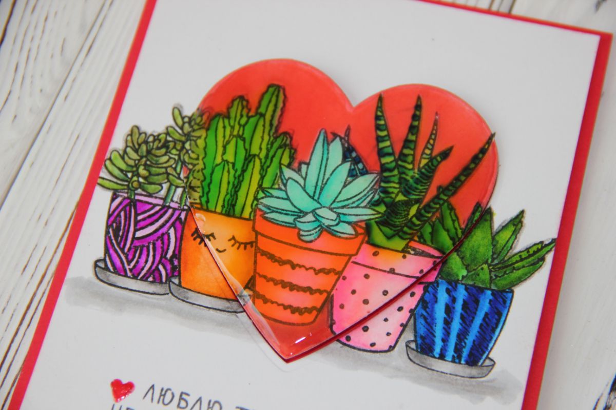 Я была бы не я, если бы в этом месяце, я не сотворила бы что-то очень яркое. Поэтому я взяла все свои кактусы, с помощью маскинга собрала их всех в одном месте, раскрасила всеми цветами радуги, а потом взяла и вырубила сердце. Прямо в середине!