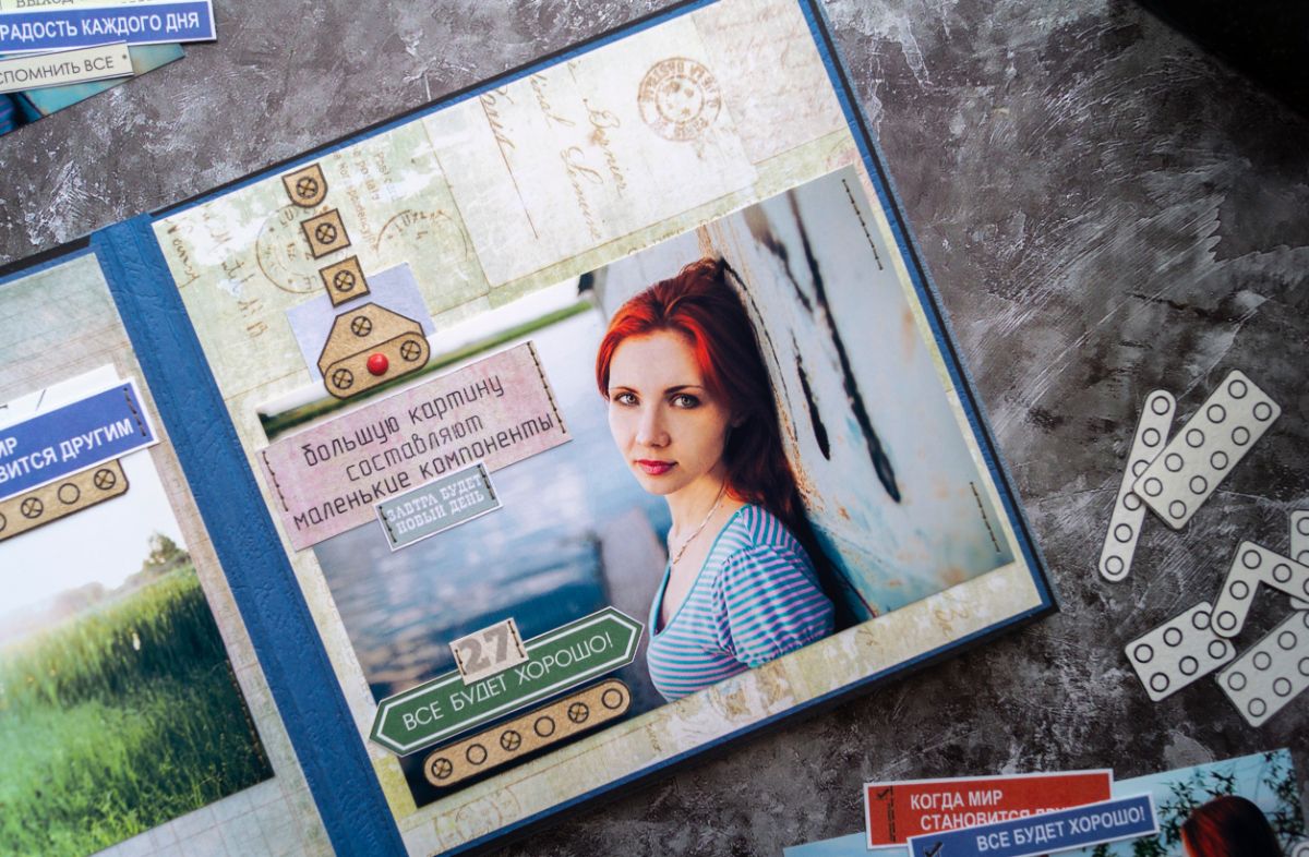 Штампы, использованные в альбомчике: ФП набор штампов "Конструктор. Всё сложится" и ФП набор штампов "Конструктор. Построй свое счастье".