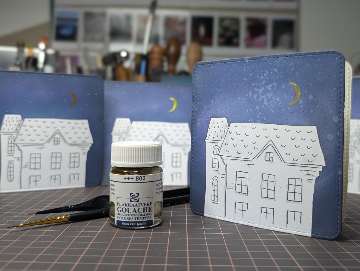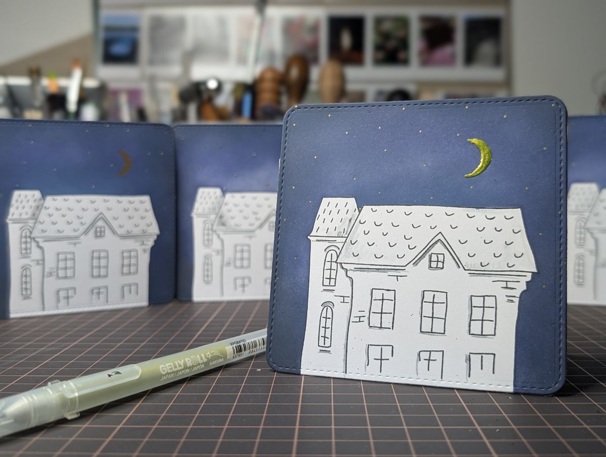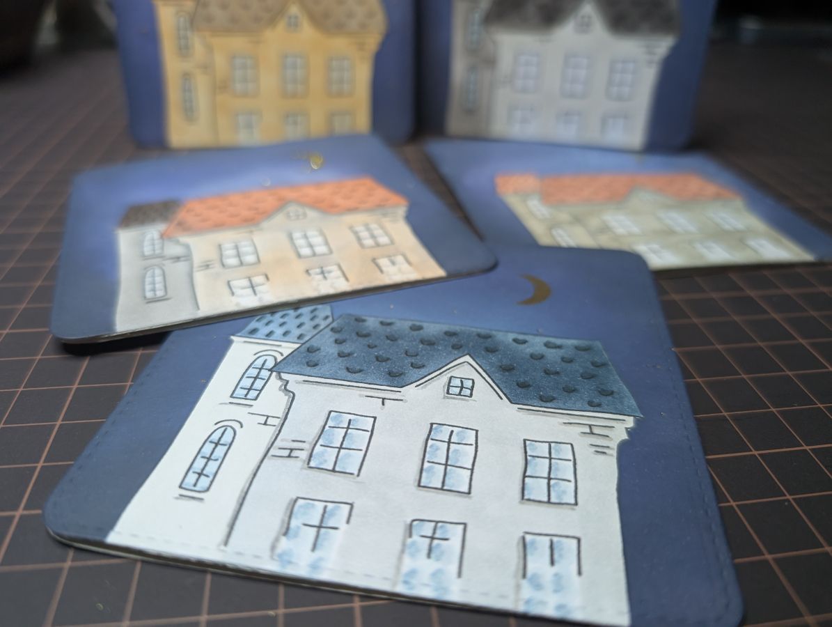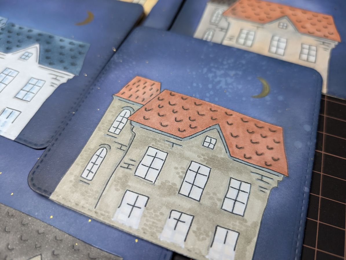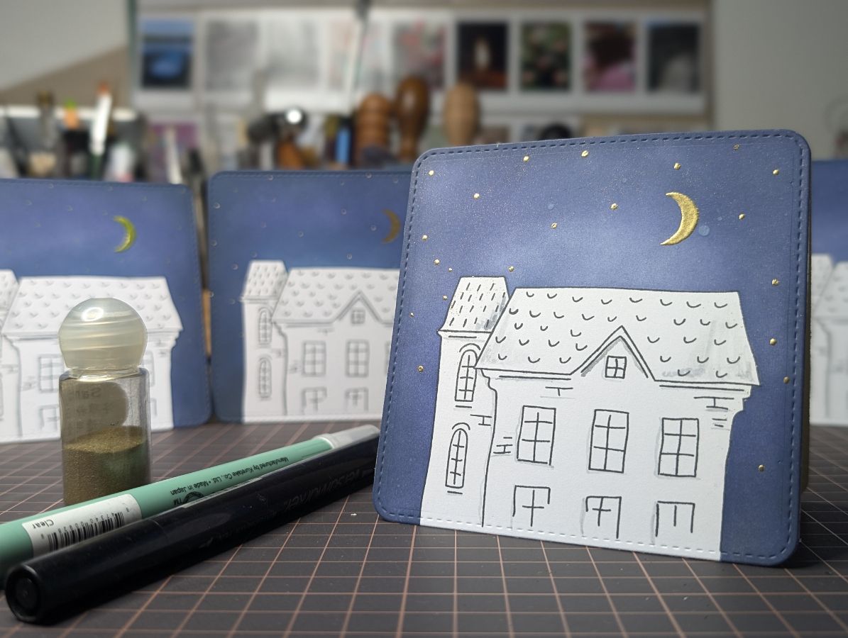 Золото есть, время оживить дома и добавить цвета. Бумага так и просит спиртовые маркеры, поэтому несколько взмахов пера и готово!