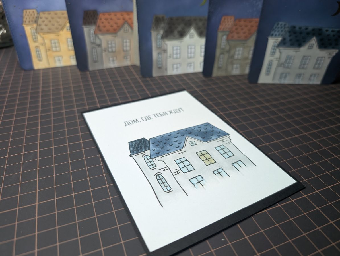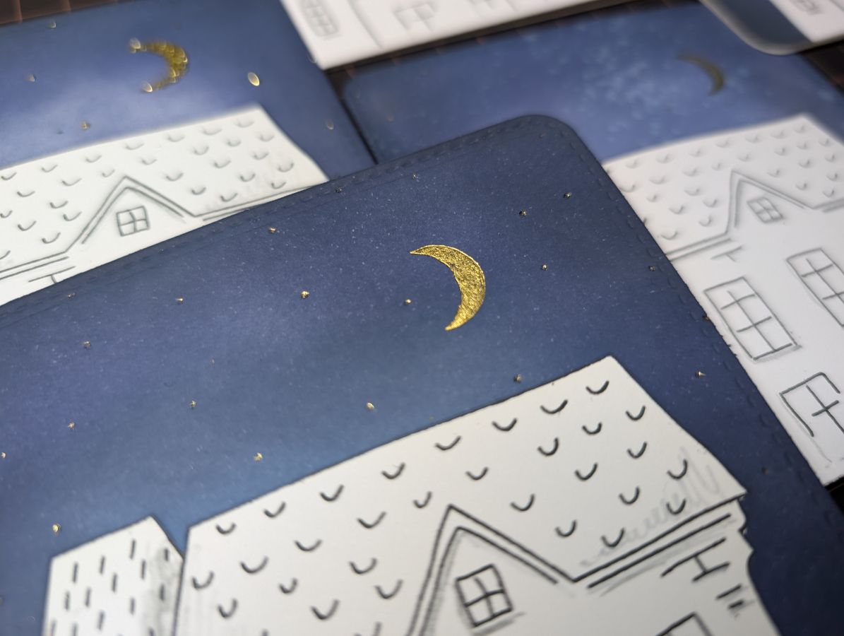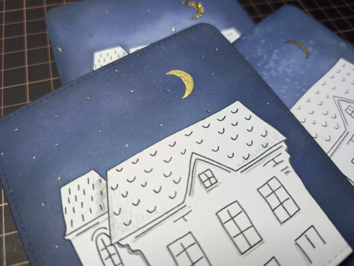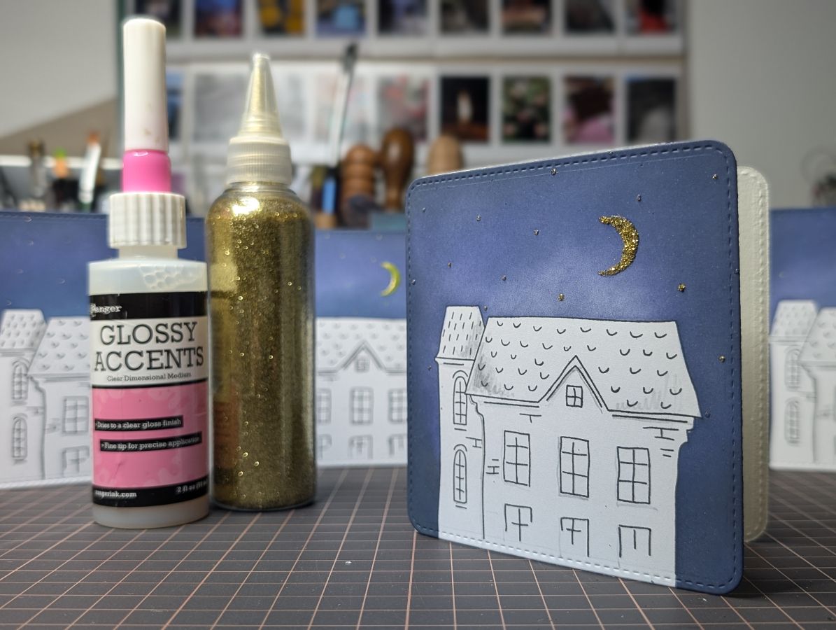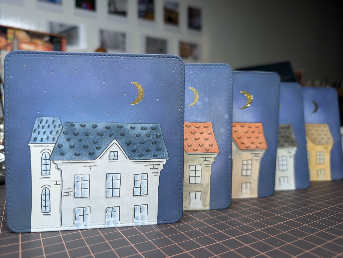 Золото есть, время оживить дома и добавить цвета. Бумага так и просит спиртовые маркеры, поэтому несколько взмахов пера и готово!