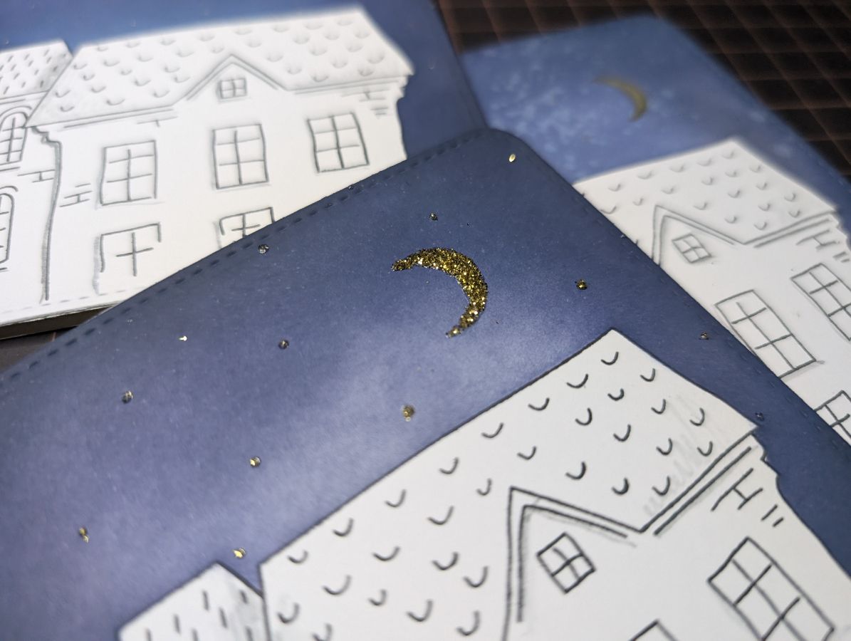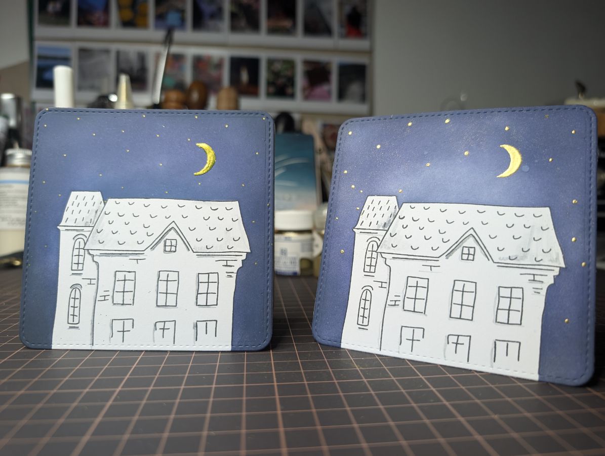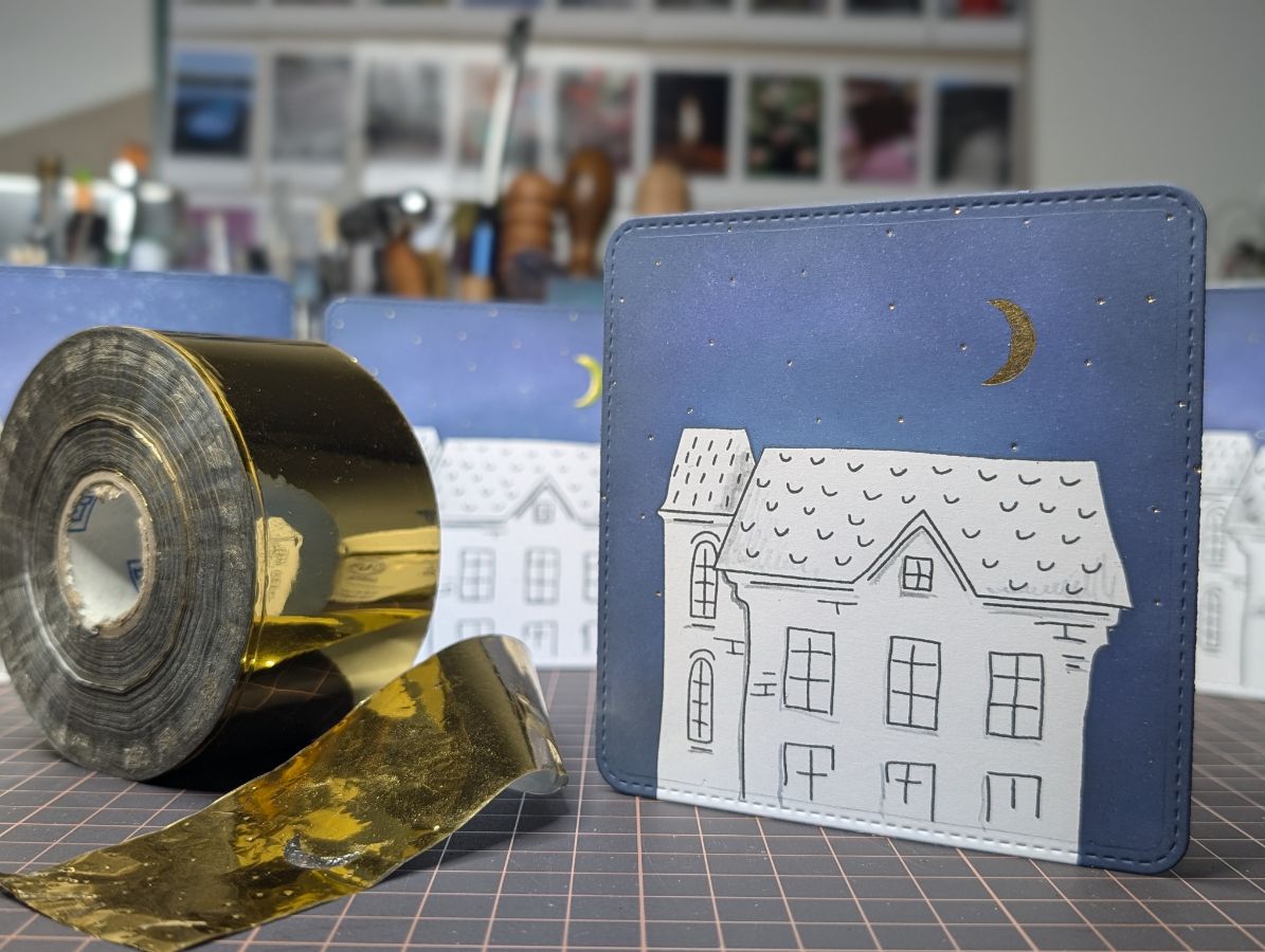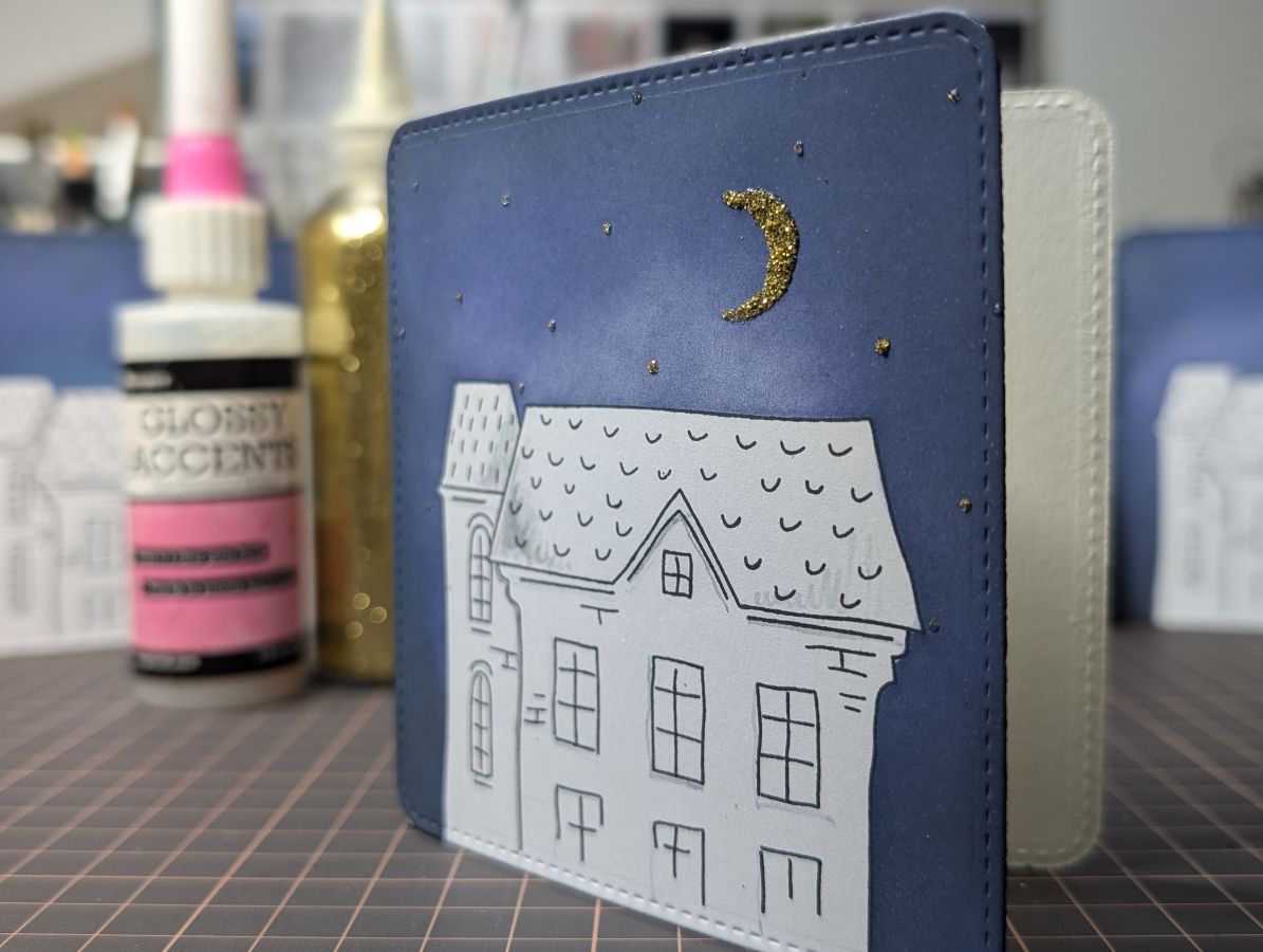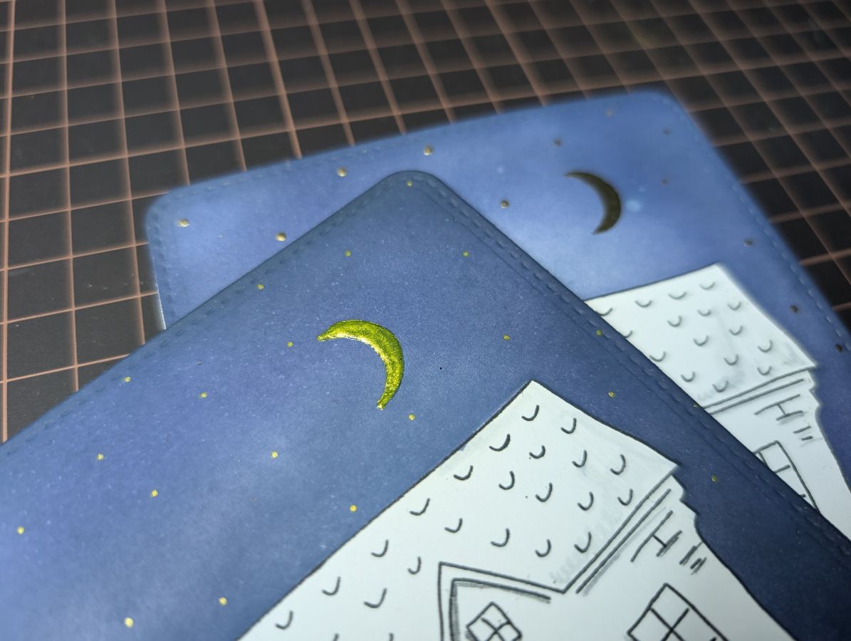 Золото есть, время оживить дома и добавить цвета. Бумага так и просит спиртовые маркеры, поэтому несколько взмахов пера и готово!