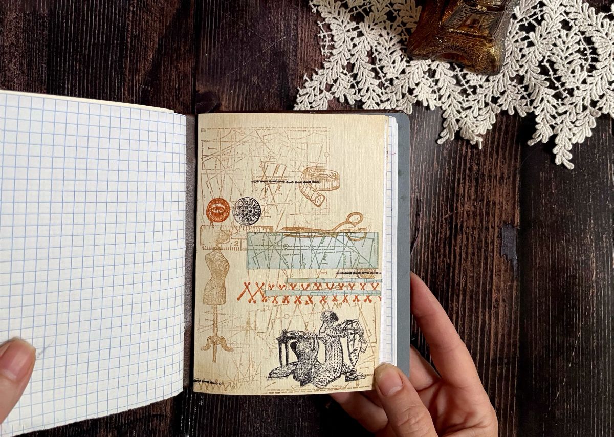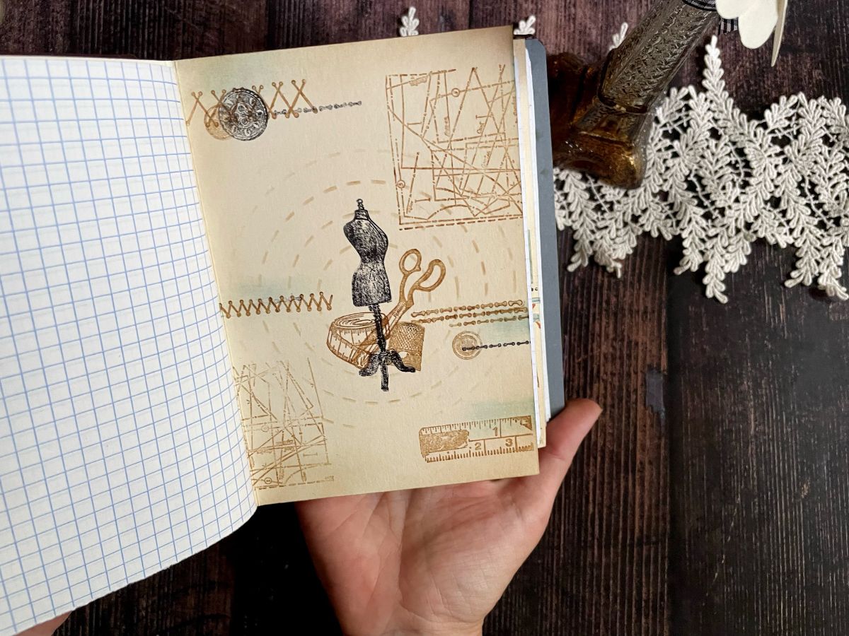 Для создания блокнота использовала следущие штампы:ФП НАБОР ШТАМПОВ "ПОРТНОВСКИЙ", ФП ШТАМП "НАБОР ШВОВ" , ФП ШТАМП "ФОН ВЫКРОЙКИ" ,ФП ШТАМП "САНТИМЕТР" (В) , ФП ШТАМП "МАНЕКЕН КАРКАСНЫЙ" (В) , ФП ШТАМП "ТЕКСТУРЫ, НАБОР" ,ФП НАБОР ШТАМПОВ "СРЕДИ БЛАГОРОДНЫХ ДЕВИЦ" и трафарет ТРАФАРЕТ "РОМБЫ", 19Х19 СМ