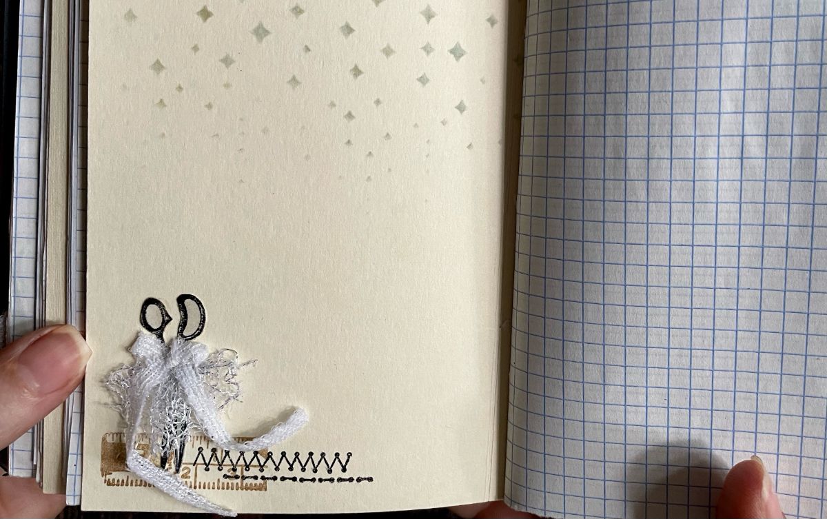 С обратной стороны разделителя сделала композицию из швейных инструментов.