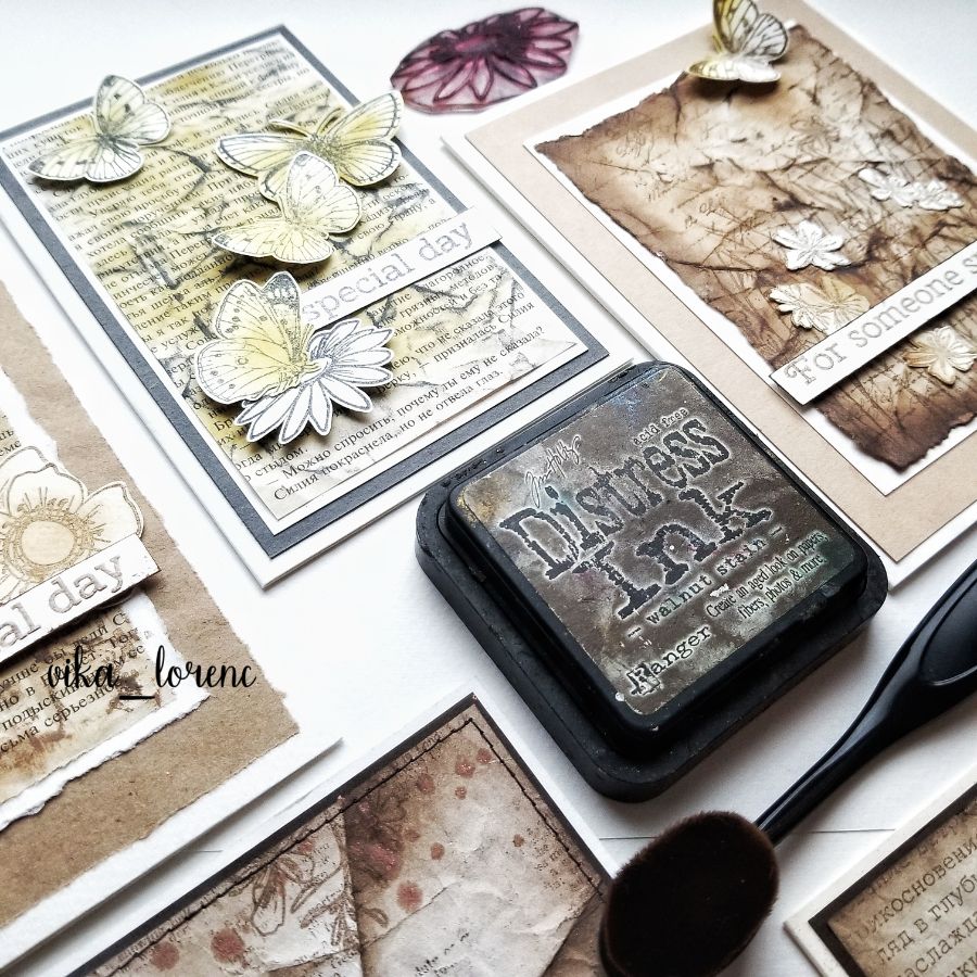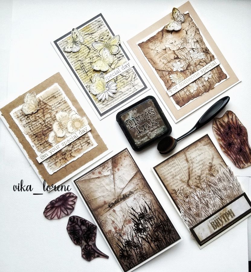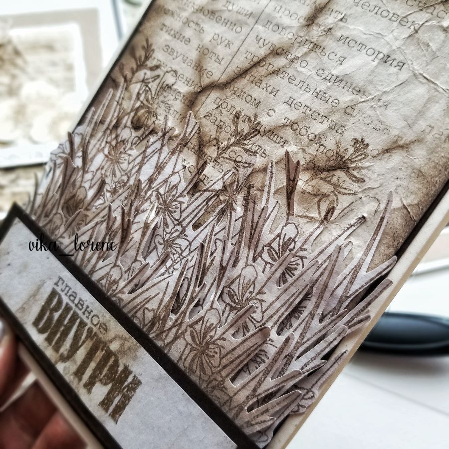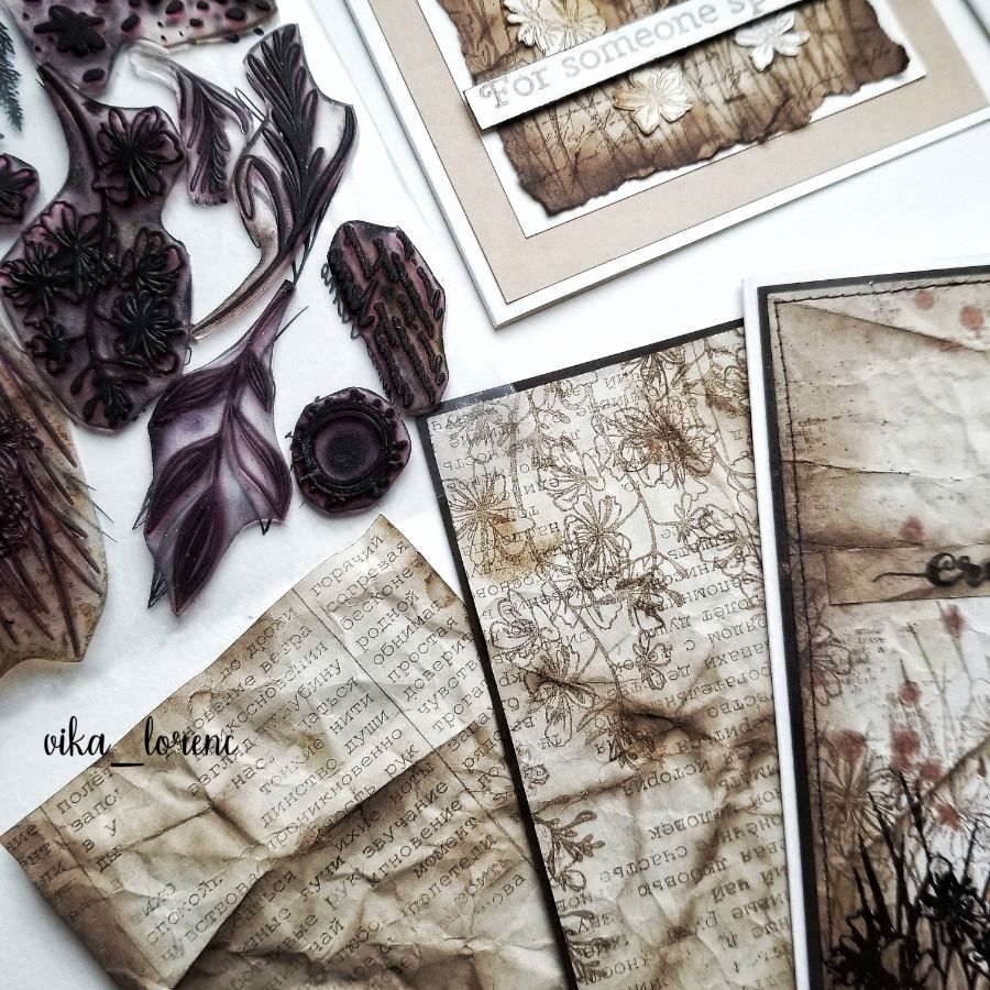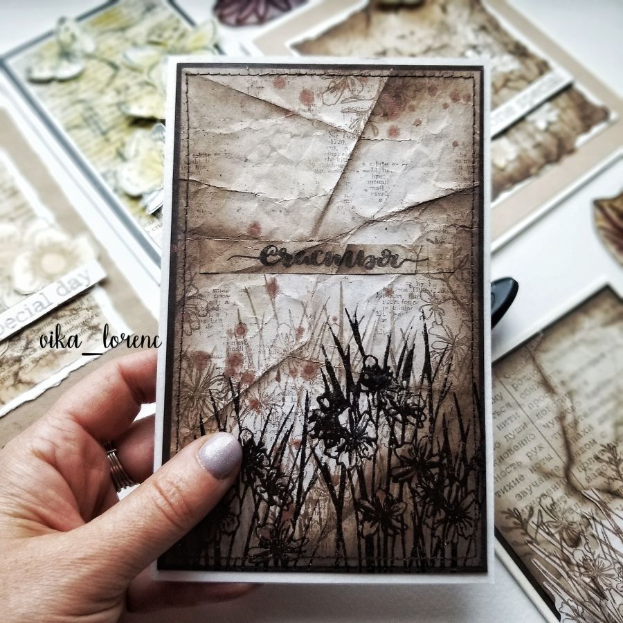 Итак, проблема фона решена и дело за нюансами концепции. Создать ломанные линии фона, добавить трагизма и драматизма. Как? ... Да просто помять бумагу в руках, Без фанатизма, но со знанием дела) Чтобы еще больше выявить и подчеркнуть получившиеся красивые линии, пройдемся по ним дистрессами..