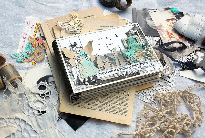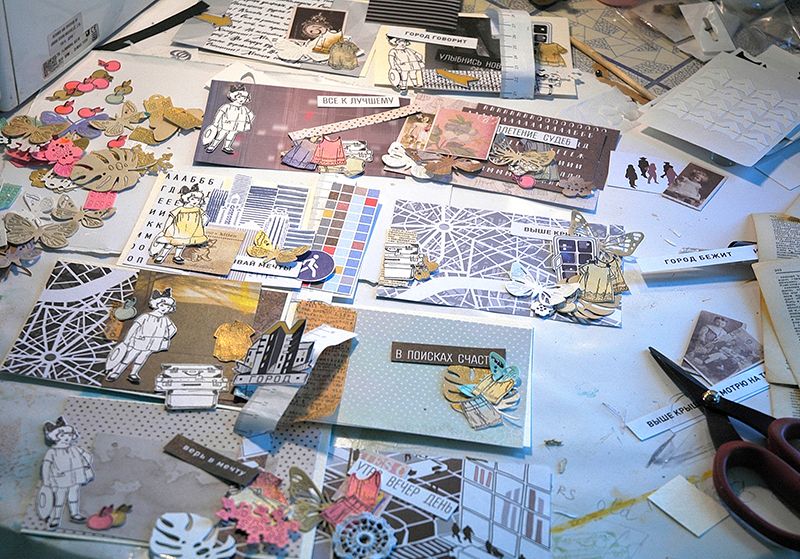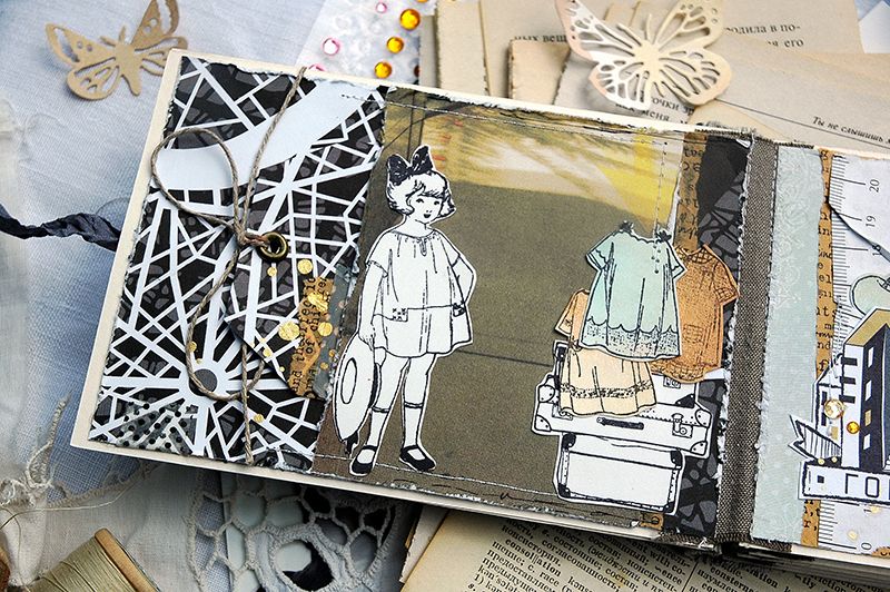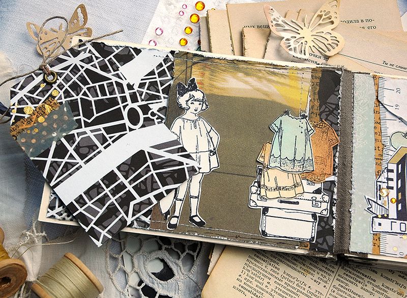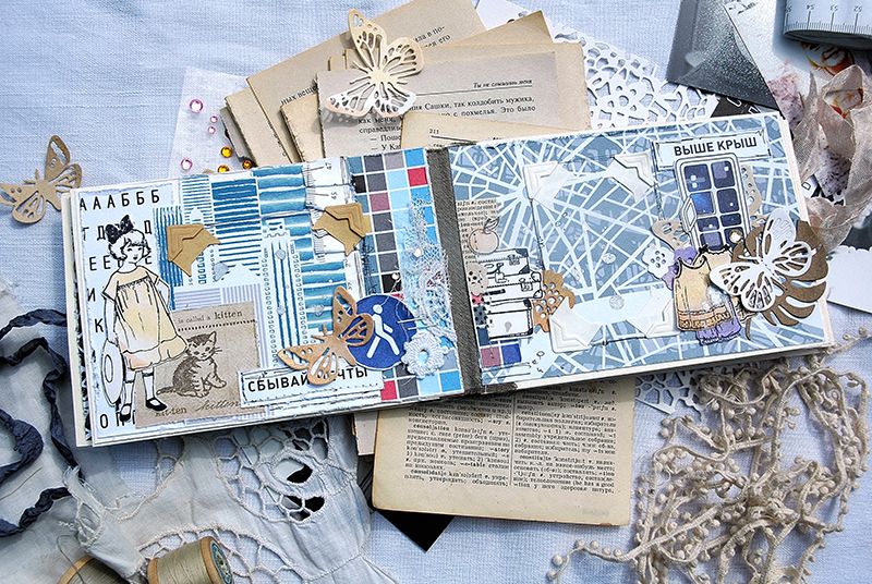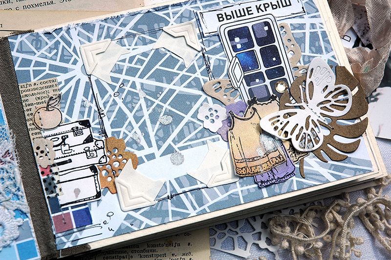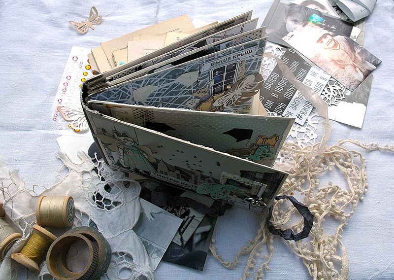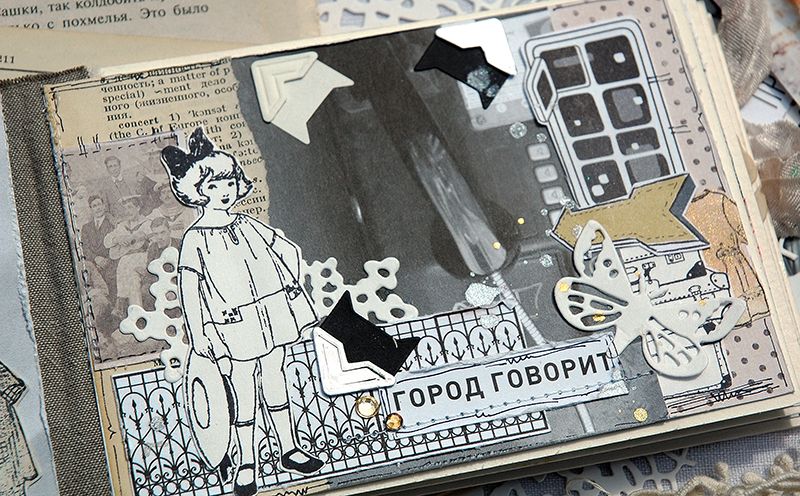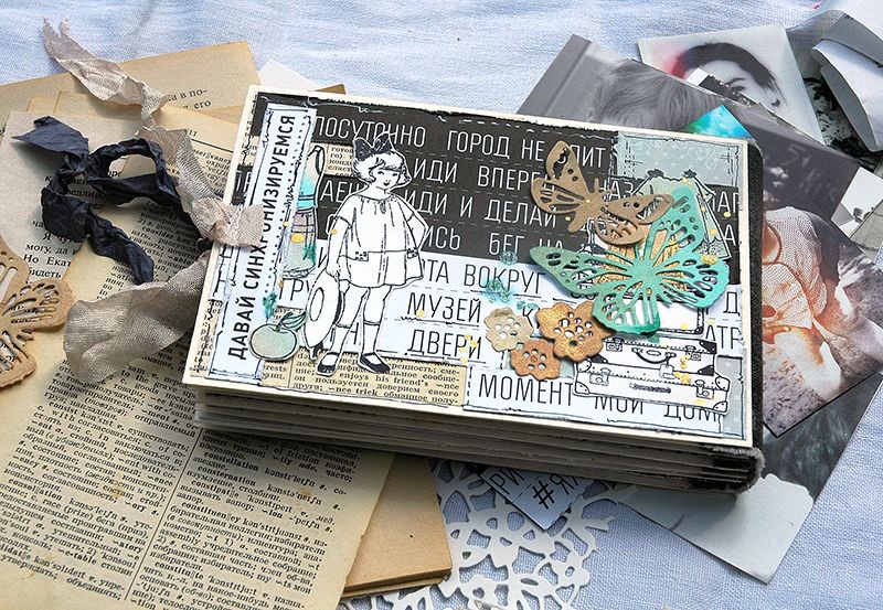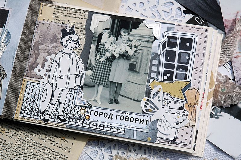 Теперь пришло время подумать над концепцией альбома. Сами штампы наводят на мысль о нежной винтажности или ретро. Цветочки, кружева, обрывки пожелтевших от времени книжных страниц и соответствующая бумага. Получился бы милый альбомчик, но, честно признаюсь, меня как-то не вдохновляло повторение пройденного. Соединить изнеженную изысканность с урбанистической резкостью показалось мне увлекательной игрой. Пусть это будет микс не в смешении техник, а в смешении стилей. Эклектика окружает нас повсюду. Центр Петербурга тоже сплошная эклектика, несмотря на кажущееся стилевое единство.