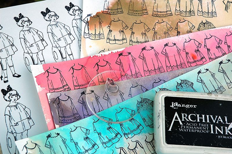 Вот тот самый штамп, который позволяет проявить фантазию. Гелевой ручкой можно дорисовать низ платья и примерить на девочку. Штамп «Нижняя рубашка».