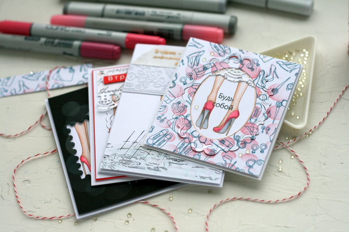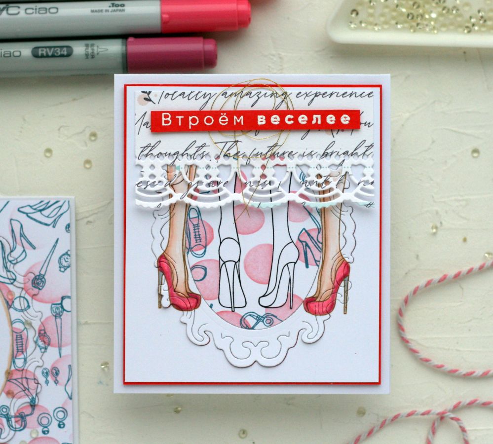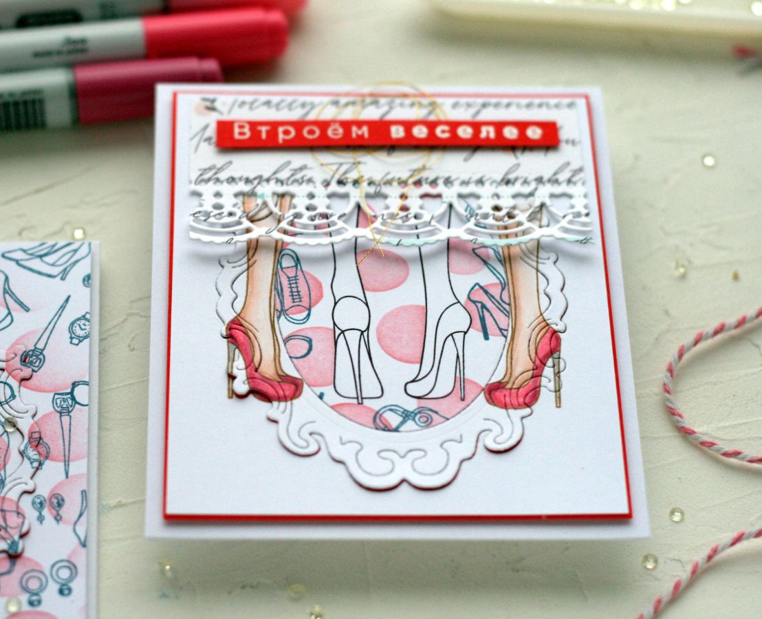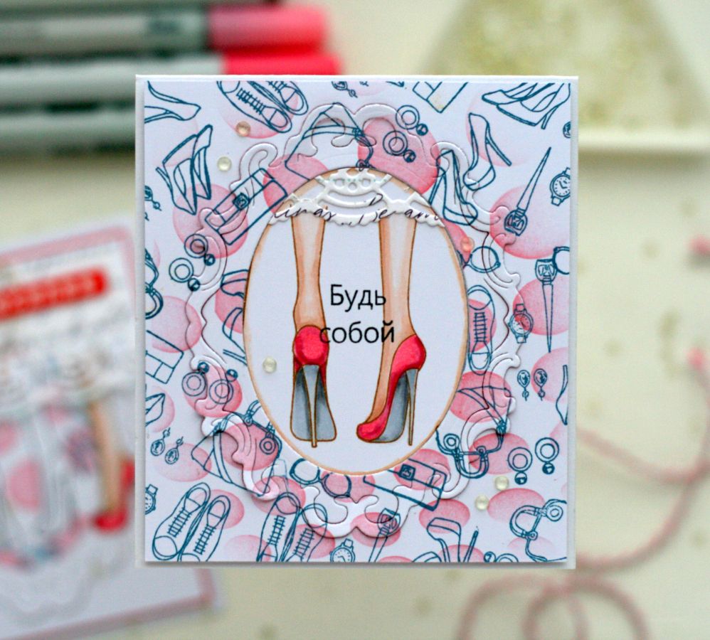 И всё-таки каблуки вещь необыкновенная! Надела — шикарная женщина, сняла — счастливый человек. Сегодня главным героем моих работ будет штамп "Три подружки" .