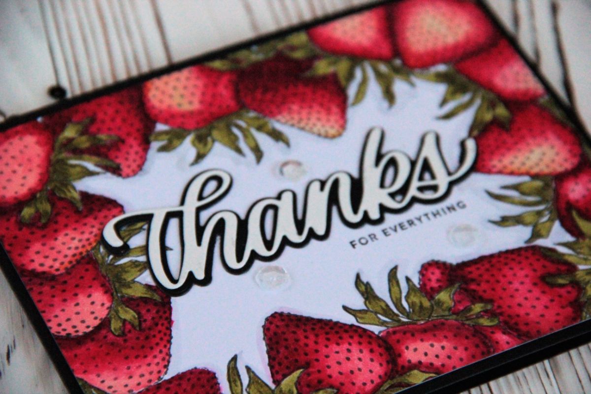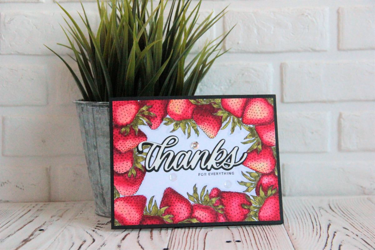 У нас в дизайн-команде, такая ситуация, что штампы для своих работ, мы можем выбирать сами. Это очень круто. А еще можно себе немножечко дарить штампов, за участие. Я подарила себе набор Хочешь клубнички, и думала что не смогу с одной единственной картинкой, сделать что-то интересное. Но.... клубничка такая оказалась работоспособная.