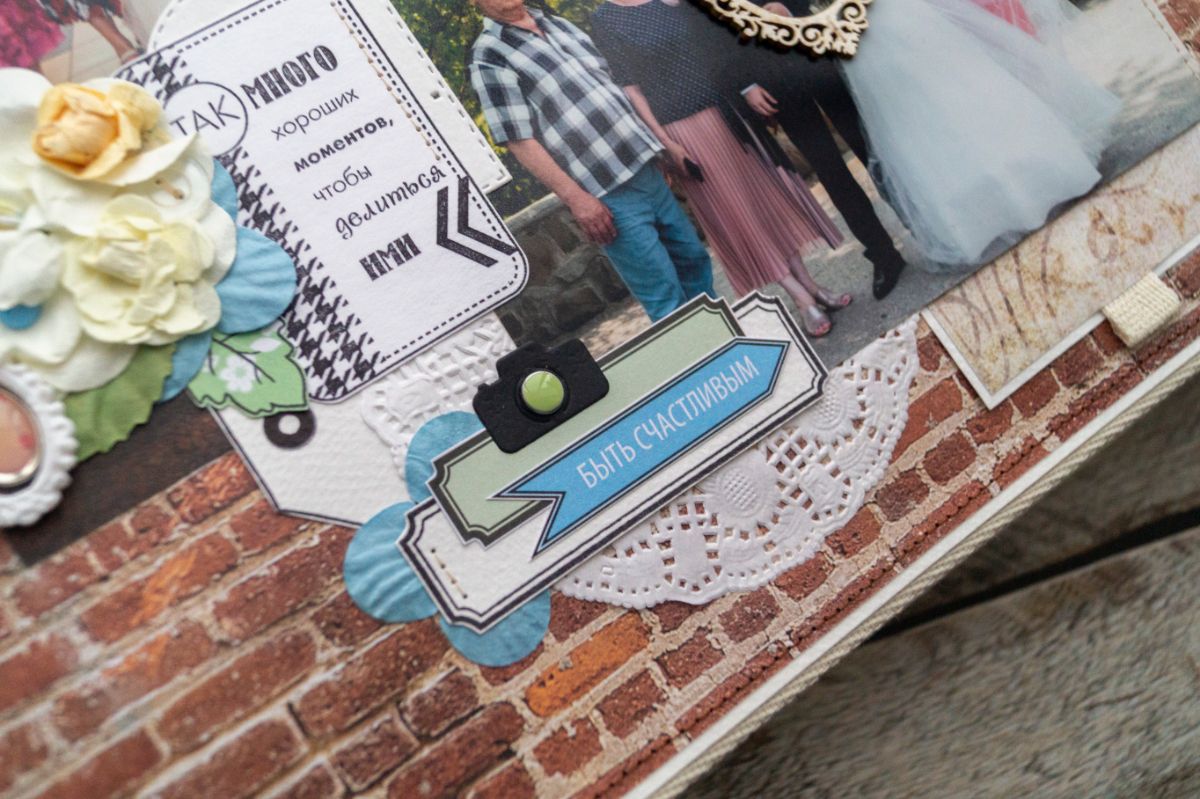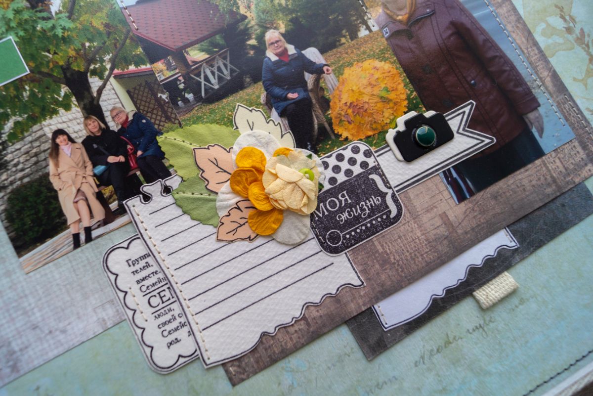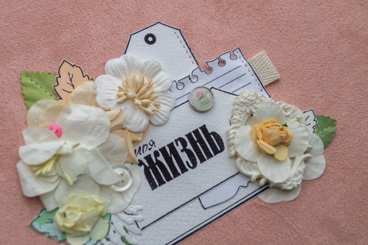 Штампы, использованные в работе: Моя жизнь, Листок в линейку, Флажок 5, Флажок 2, Флажок 1, Стрела 3, Тег большой, Тег маленький, Так много хороших моментов, С-Счастье, Р-Радость, В-Время, Л-Любовь, С Юбилеем! 8 см, Здесь история, Листья яблони, Важно! не забывать, Тепло семьи, Моя семья. Моя жизнь (д), Наша жизнь прекрасна.