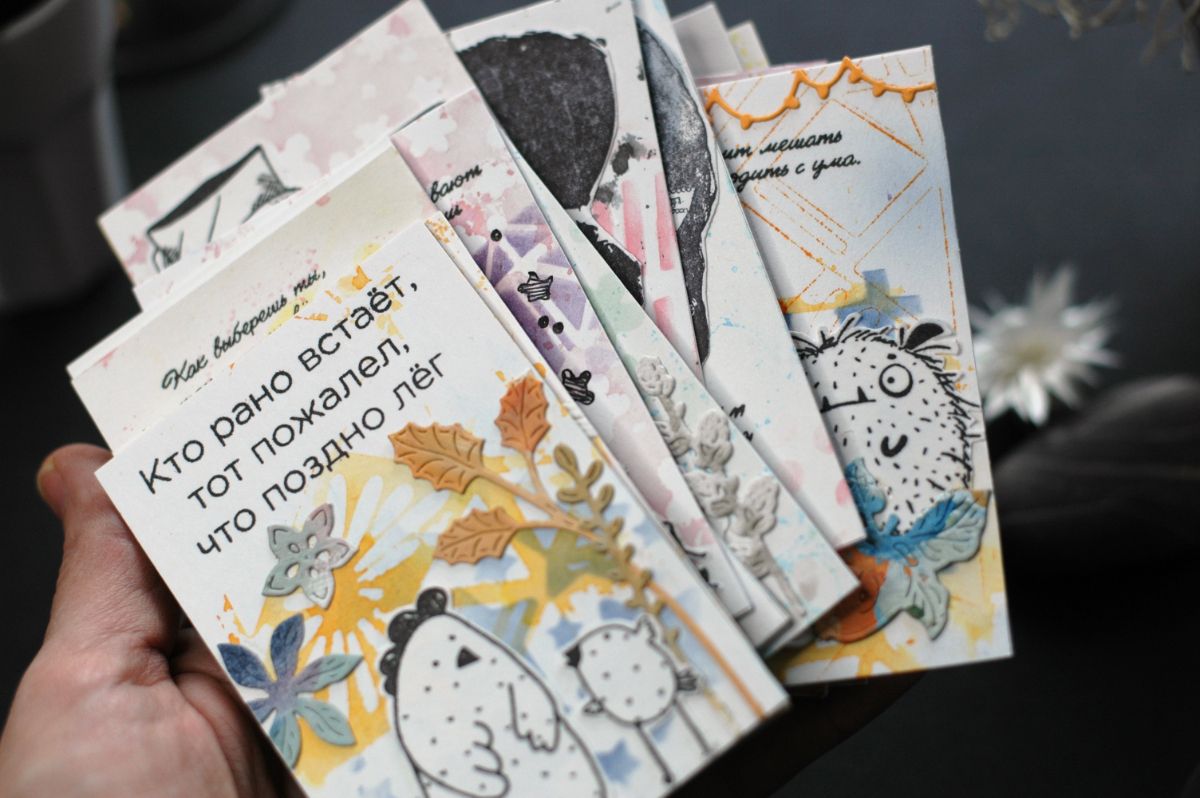 В продолжении темы Святочного дневника и надписей, которые были сделаны для гаданий в Святки, я сделала карточки. Они напоминают по смыслу метафорические карты. Можно задать вопрос и получить ответ, вытащив одну из каточек.