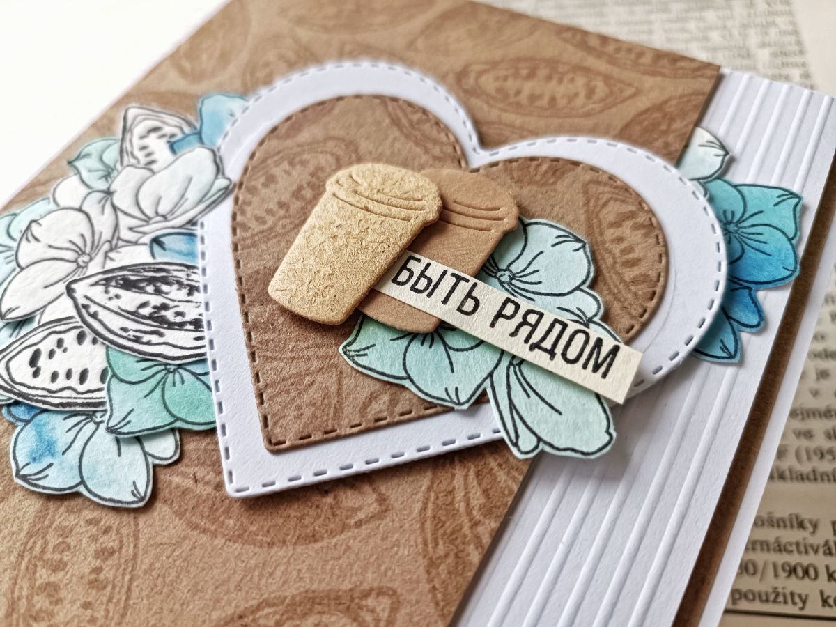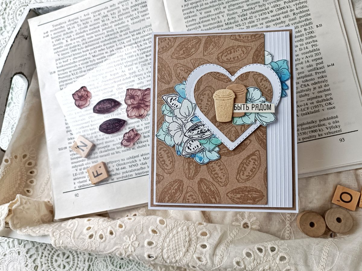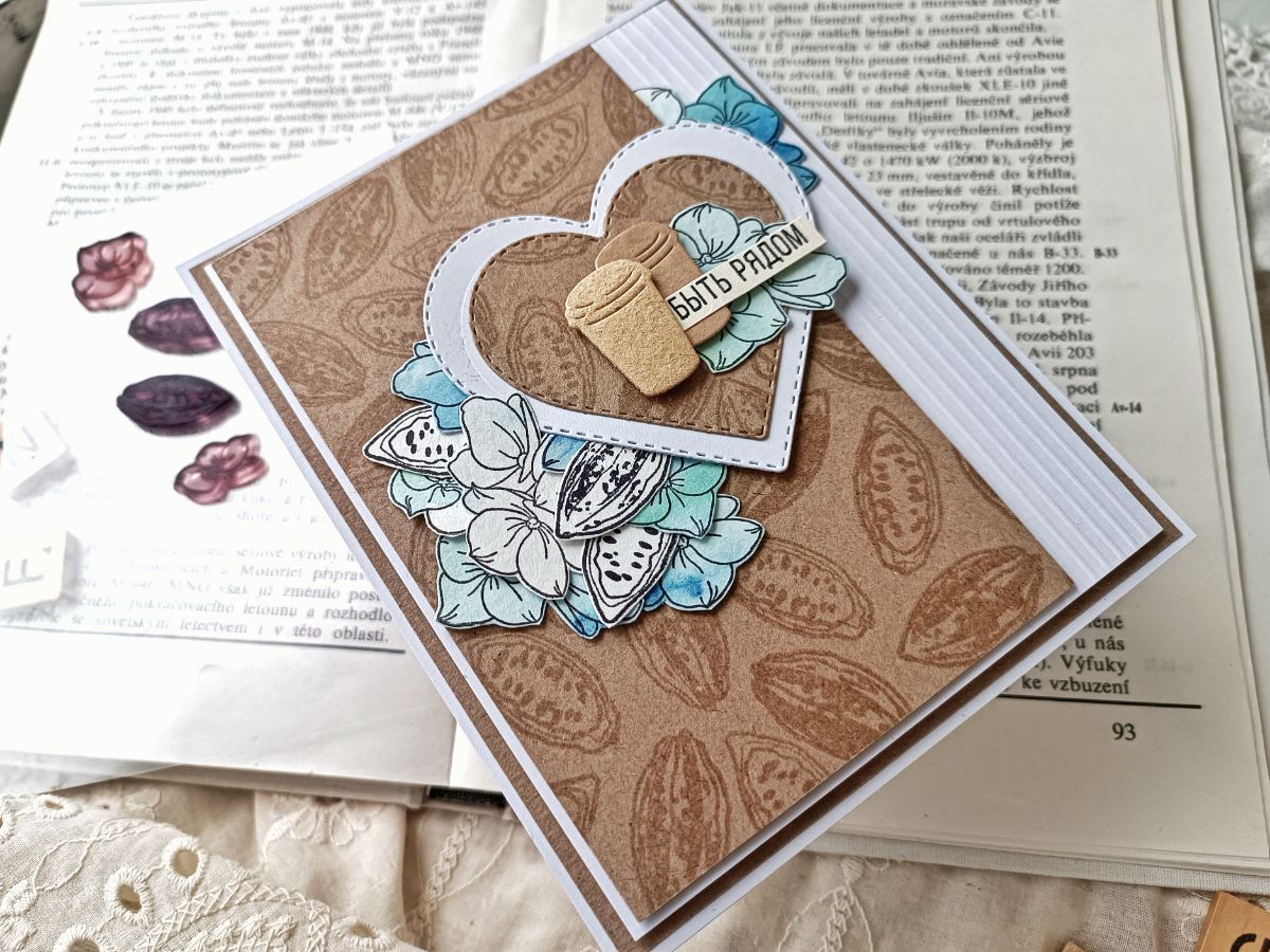 Чудесным гортензиям присваивают много значений, среди прочего, они являются и символом любви. А уж как они необыкновенно прекрасны! Так и просятся в работы. Решила привнести в некоторые открытки ещё больше теплоты, добавив какао. Пусть это и не кофе, но тоже согревающий напиток.