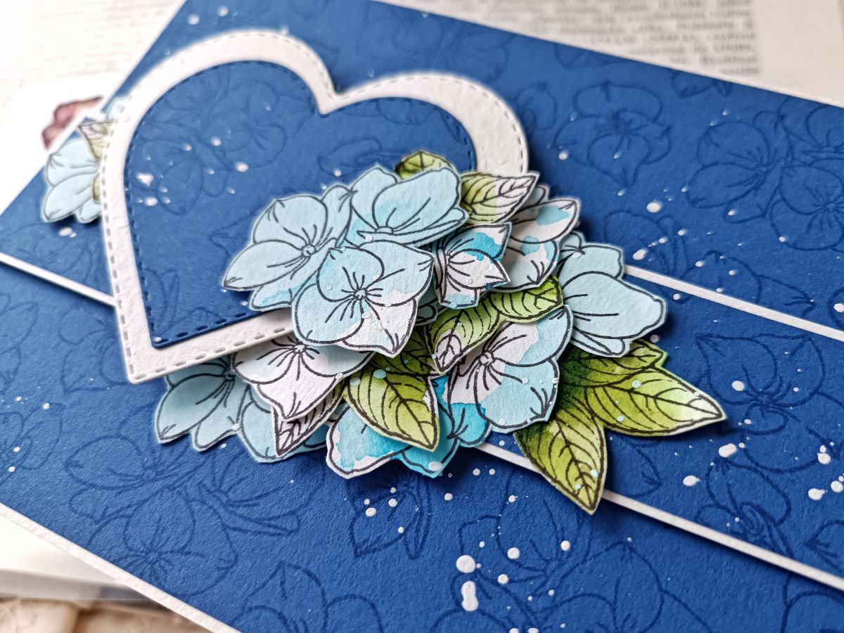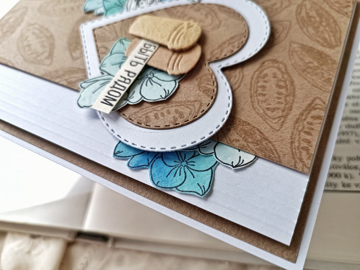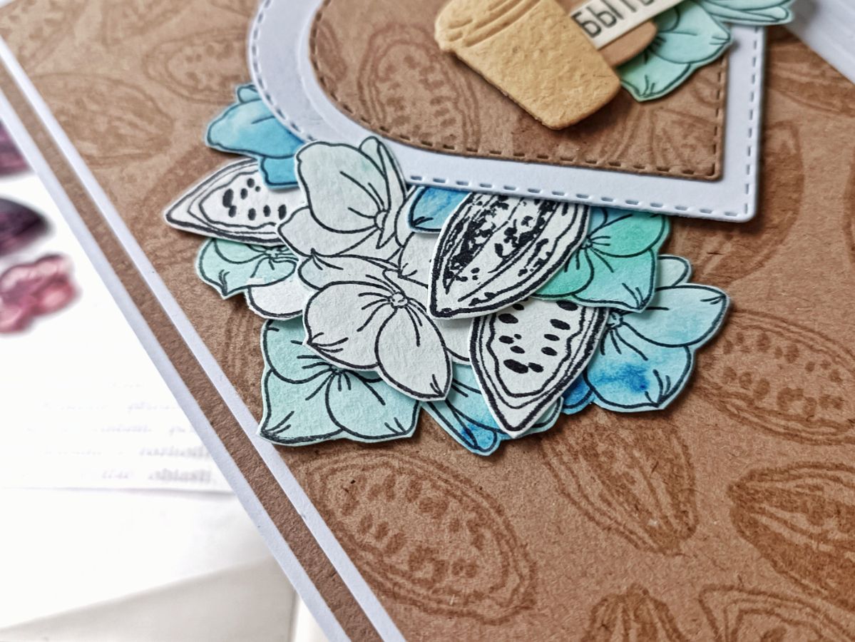 Чудесным гортензиям присваивают много значений, среди прочего, они являются и символом любви. А уж как они необыкновенно прекрасны! Так и просятся в работы. Решила привнести в некоторые открытки ещё больше теплоты, добавив какао. Пусть это и не кофе, но тоже согревающий напиток.