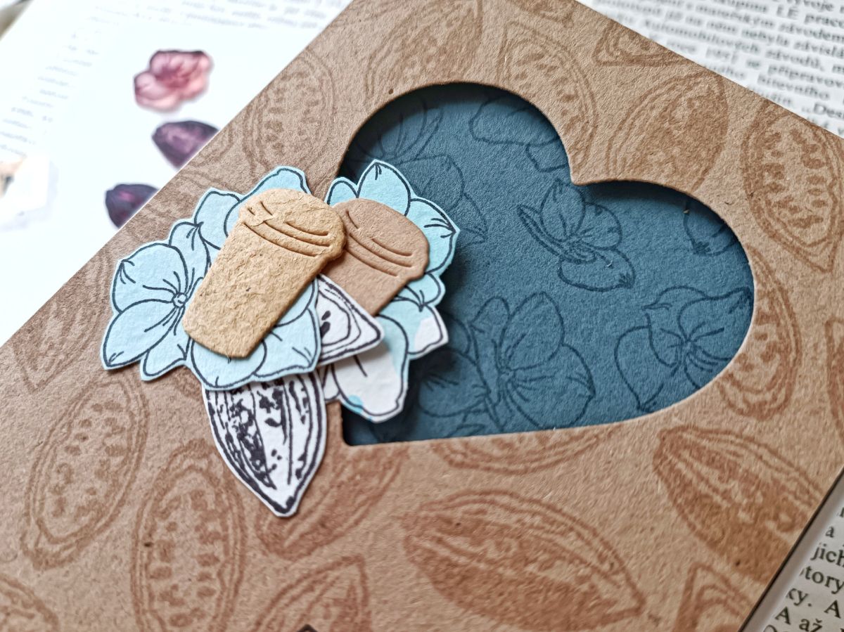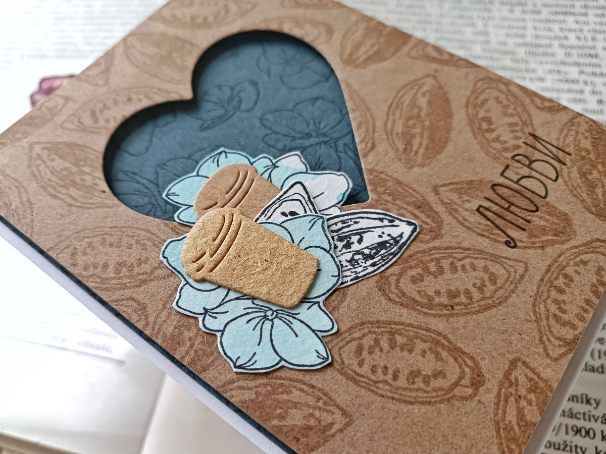 На подхвате какао-бобы из набора штампов "Яблоко и корица" и "Базилик"
