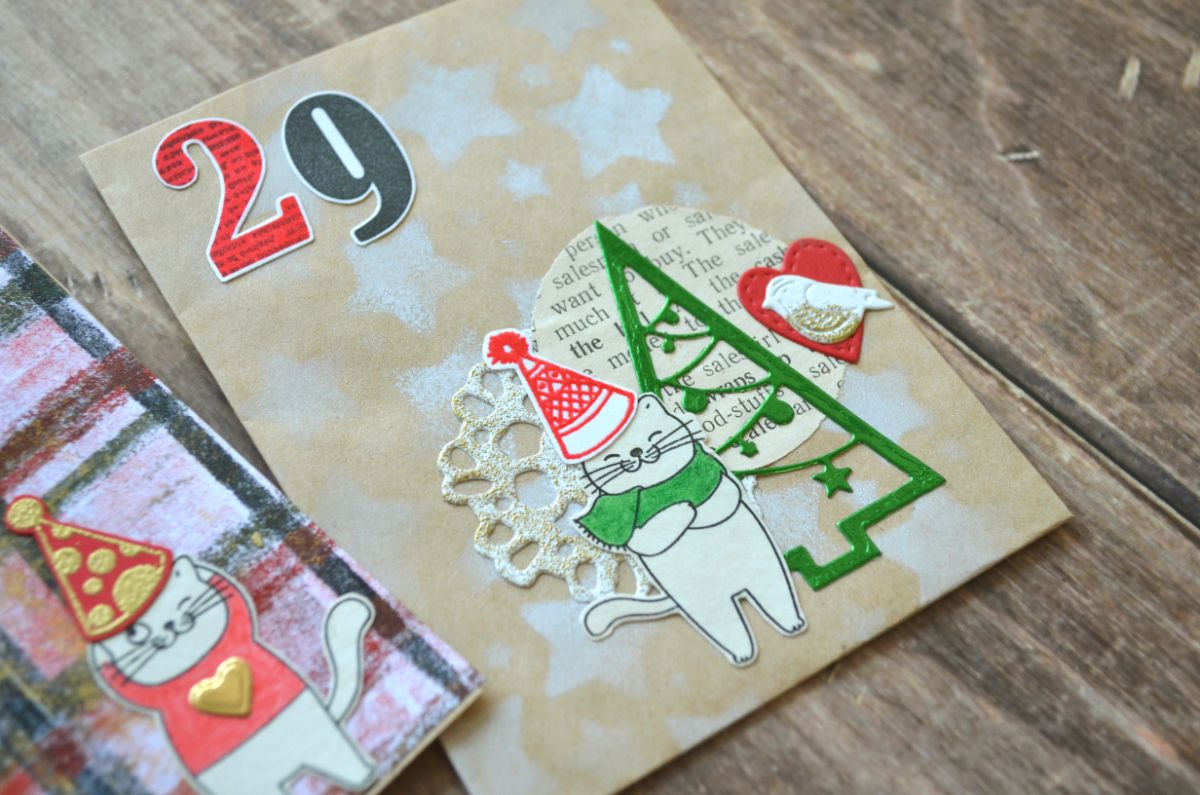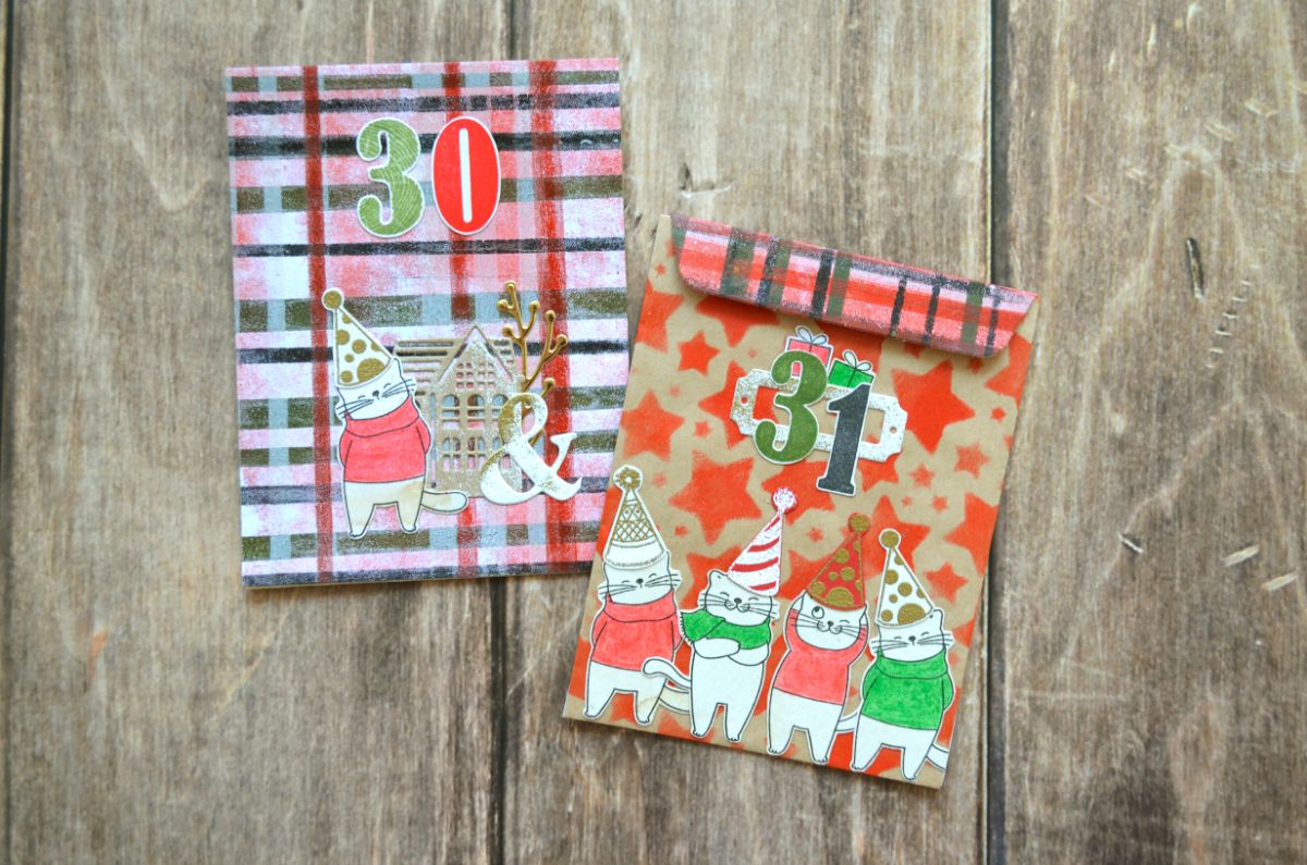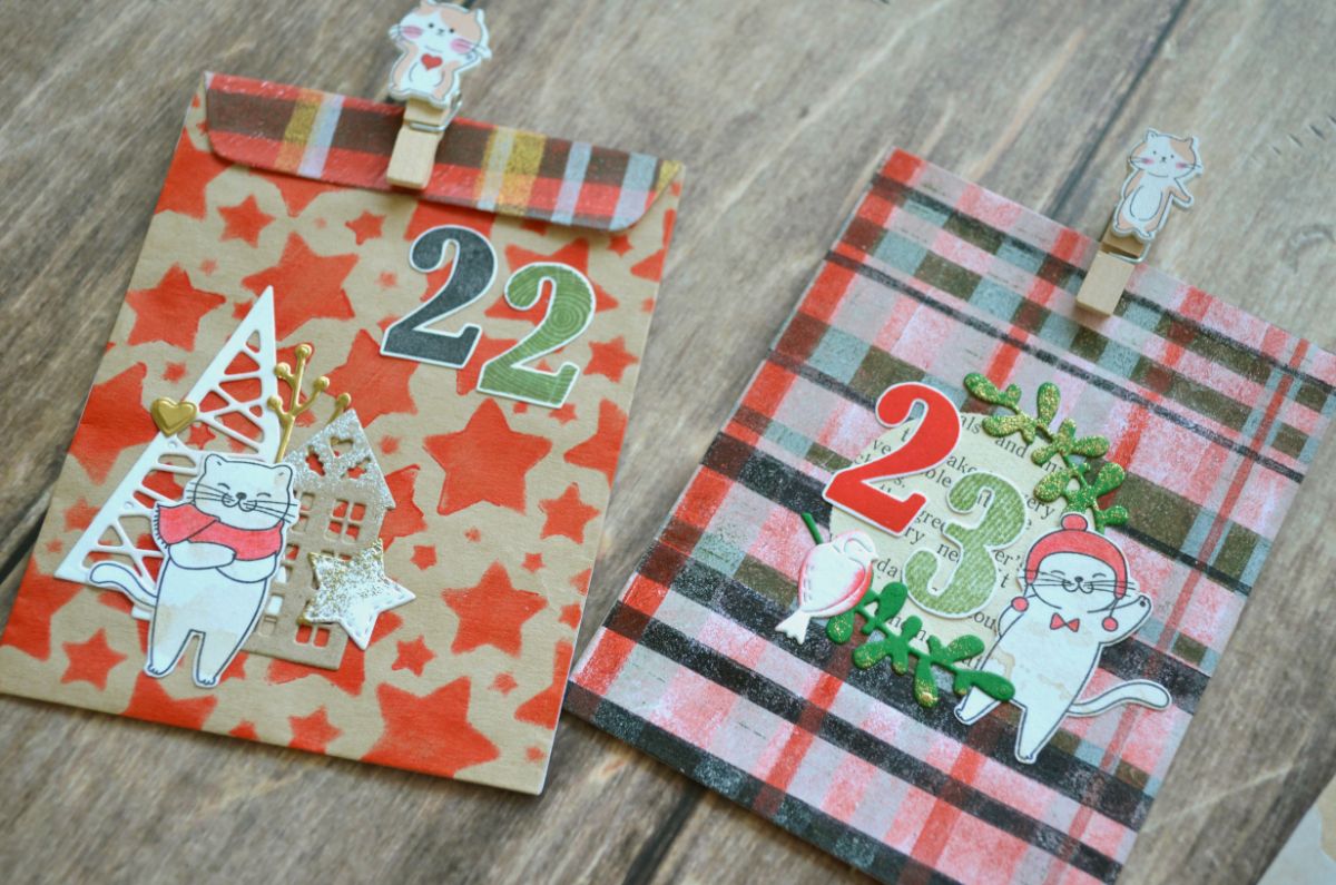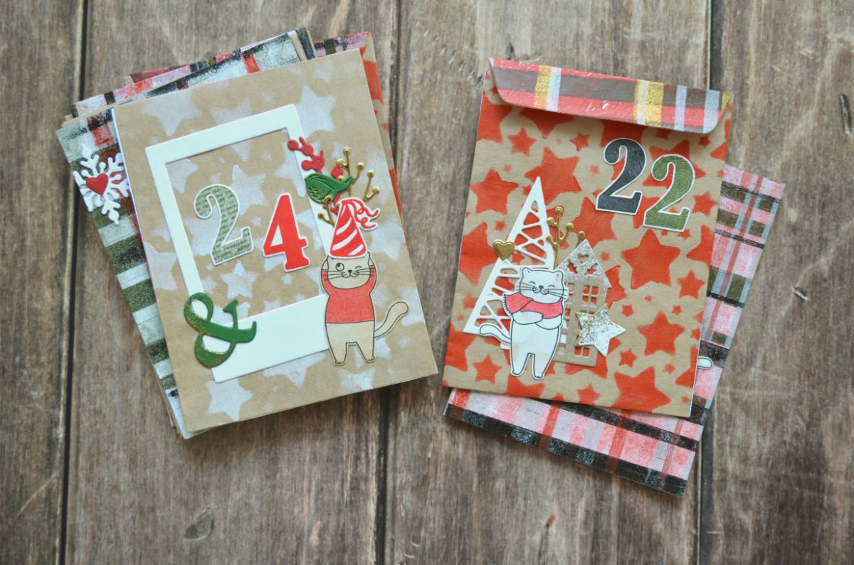 В этом году я сделала адвент календарь для своей маленькой дочки. Она страстная кошатница, поэтому главными героями стали Котики в теплой одежде. Календарь для ребенка, поэтому я остановилась на классическом новогоднем сочетании цветов и простом антивандальном декоре :)