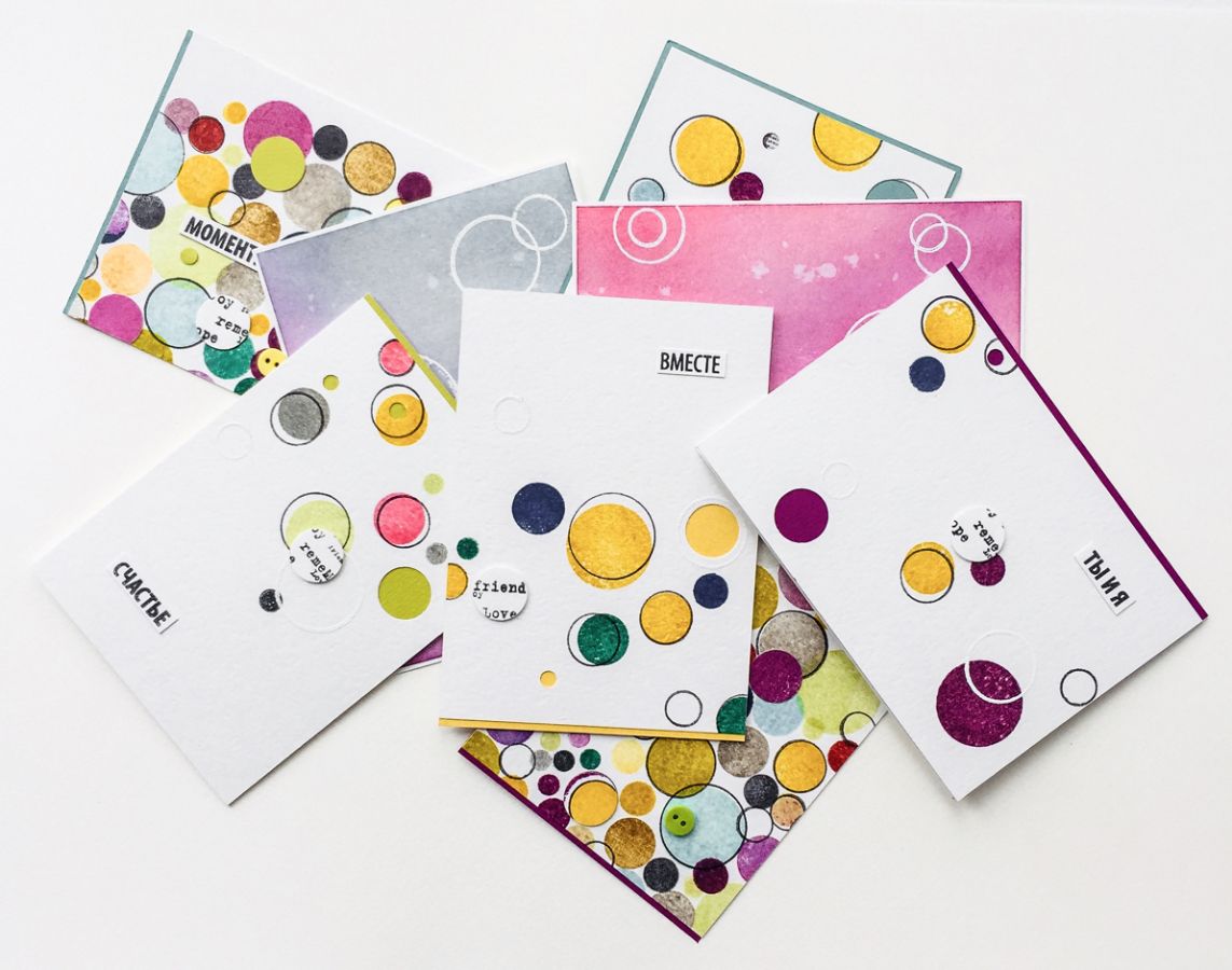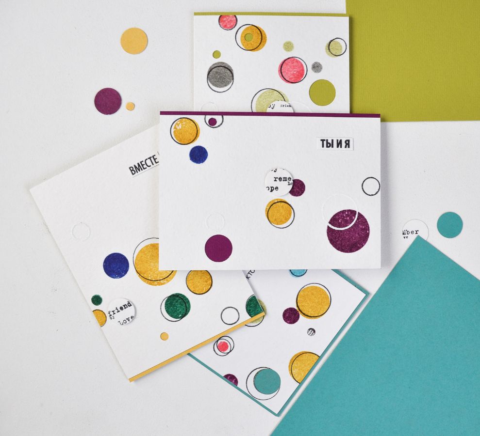 Хочу показать серию открыток с кругами, которые сделать легко и быстро. Открытки вообще - один из моих любимых форматов работ, с них начинался мой скрап.