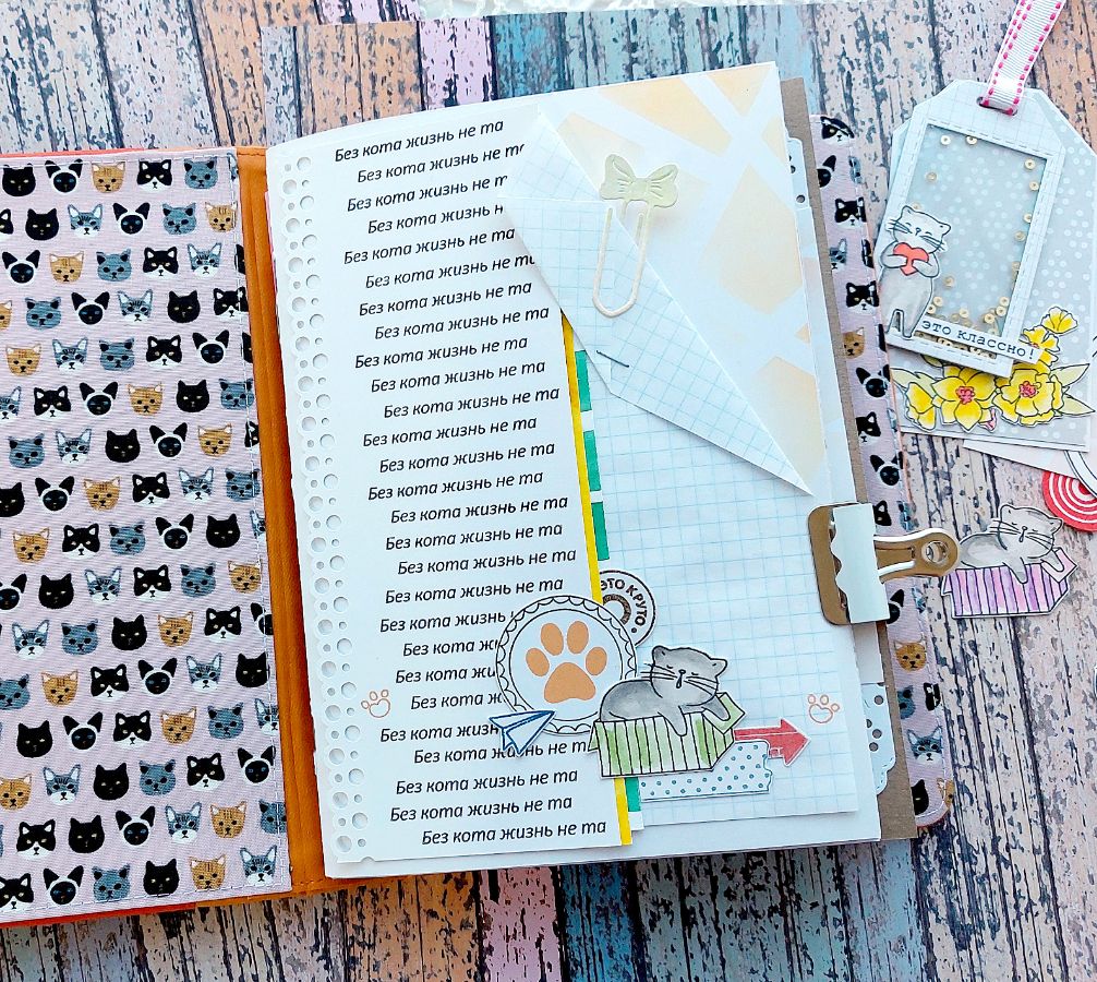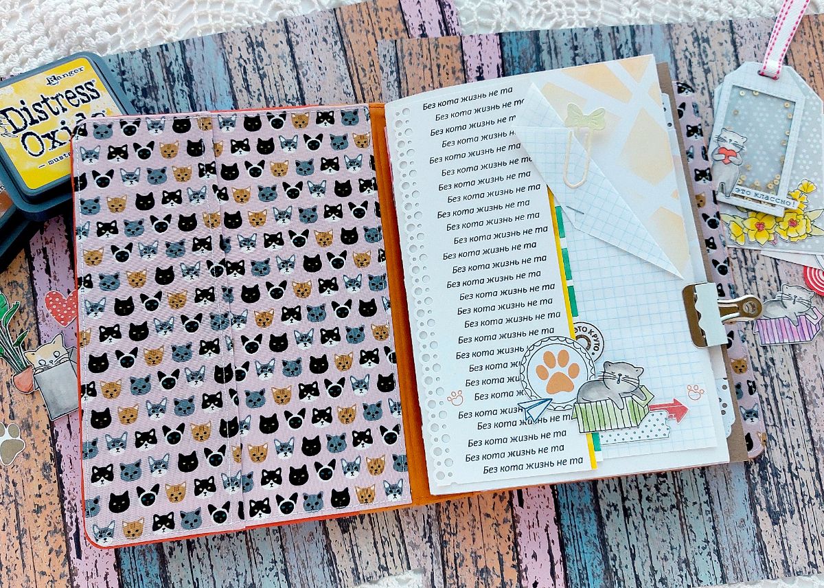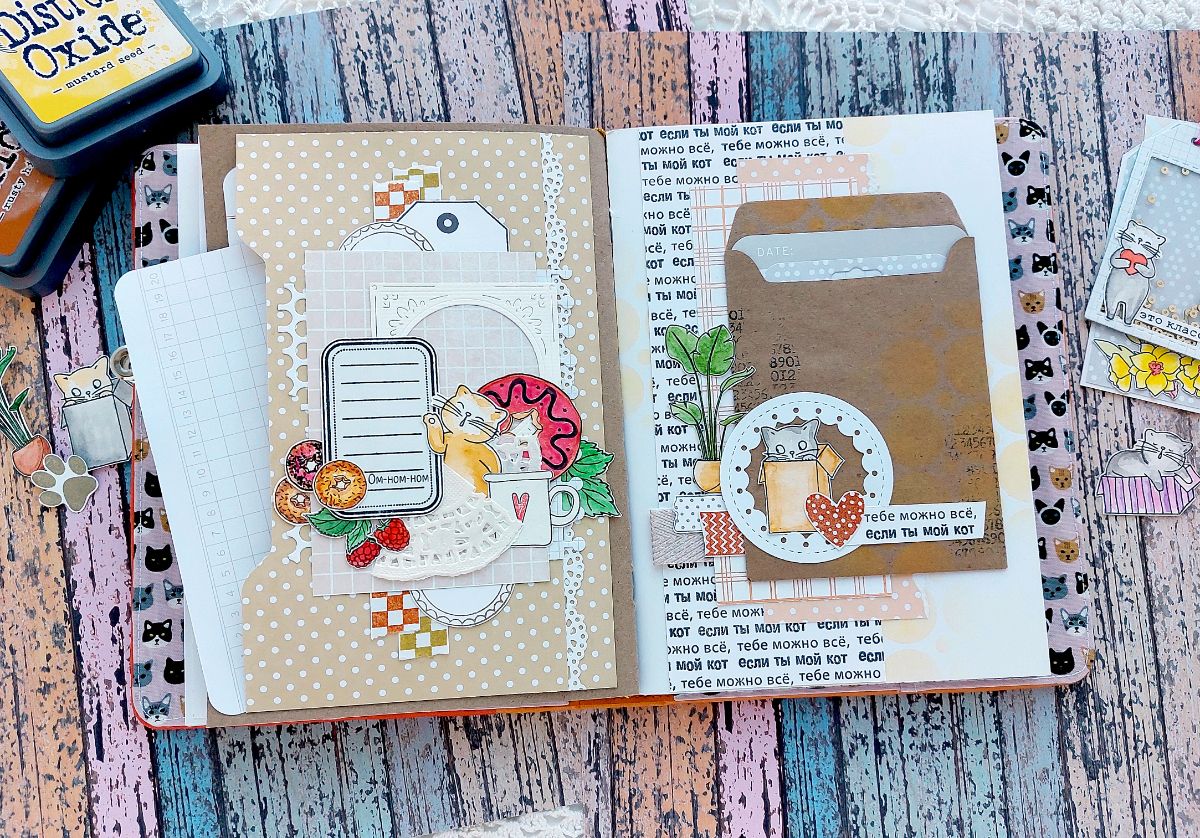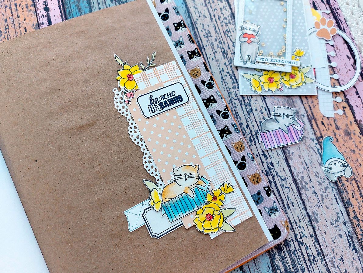 Котики радуют всегда! Поэтому сегодня котики из Набора штампов «Без кота жизнь не та» поделились вдохновением и поселились в задорном мидори-блокноте.