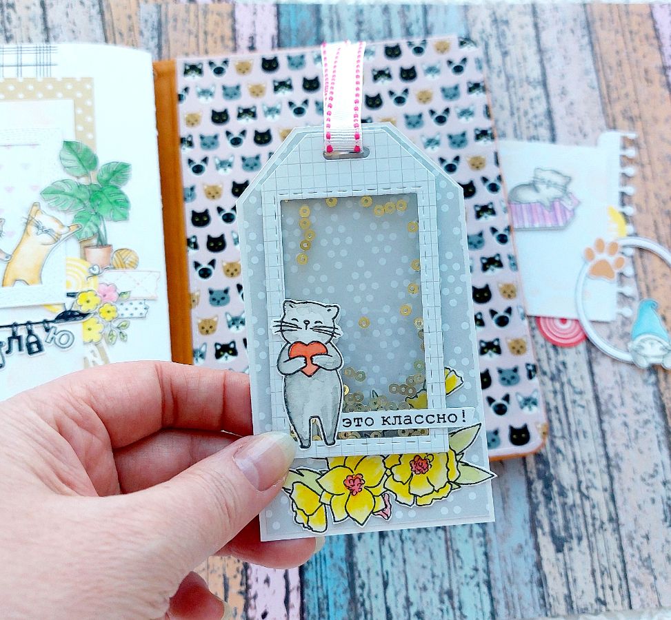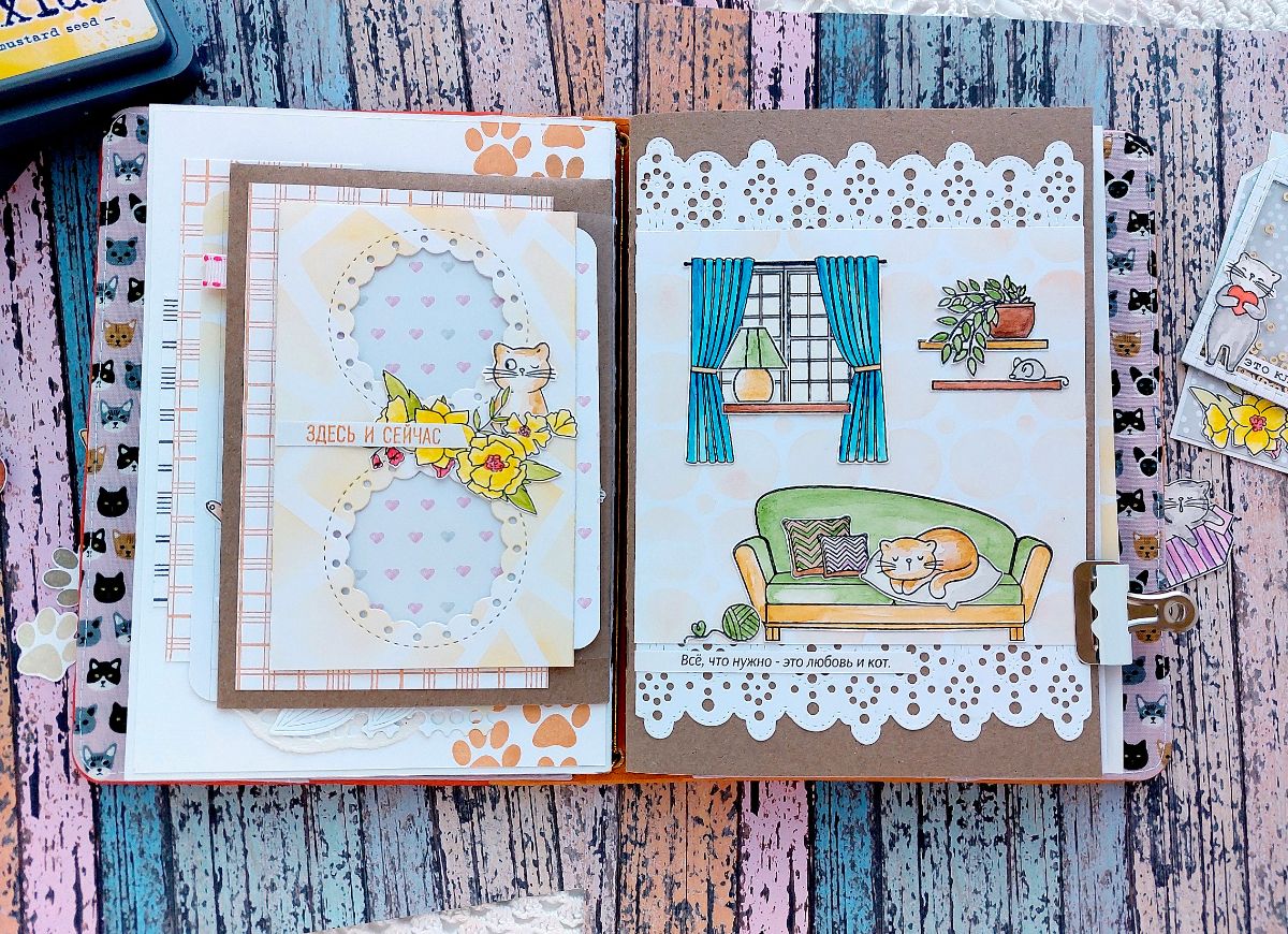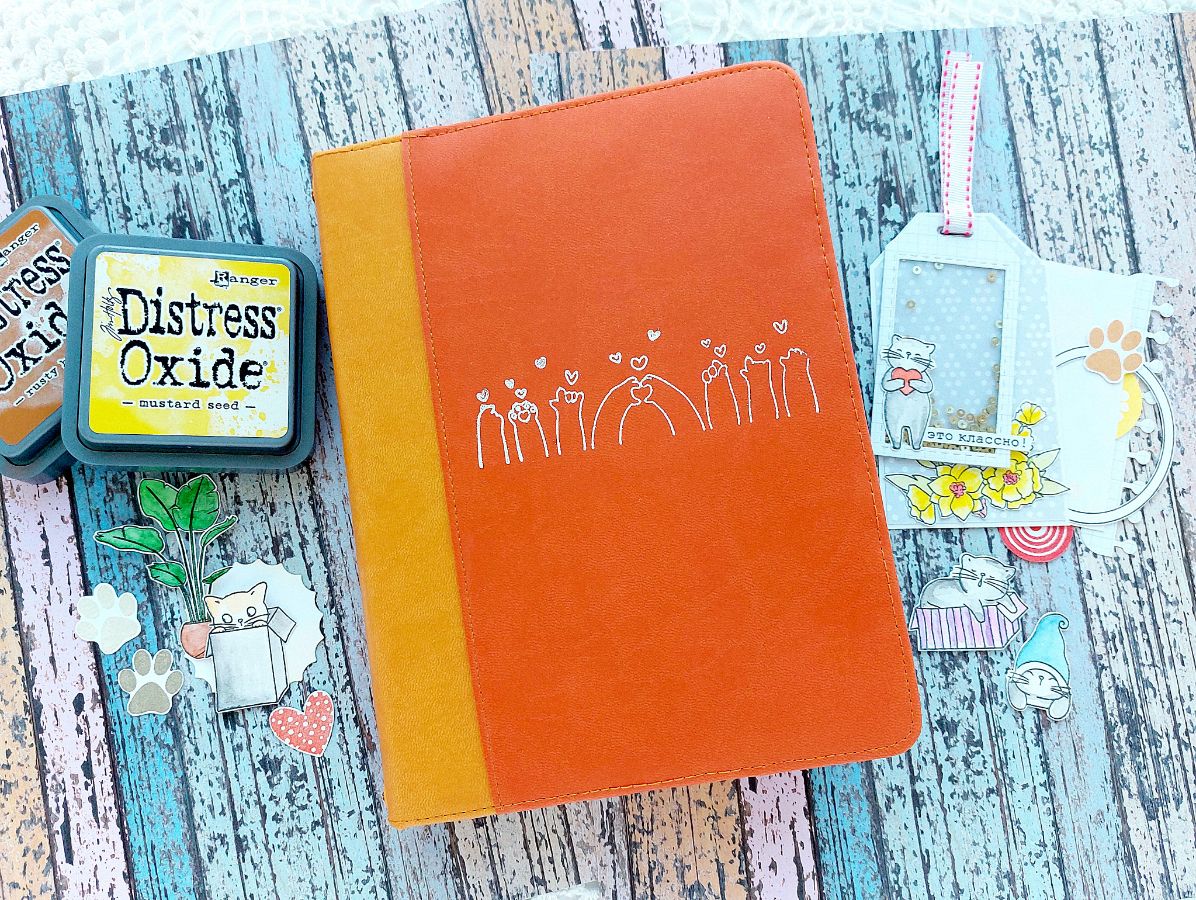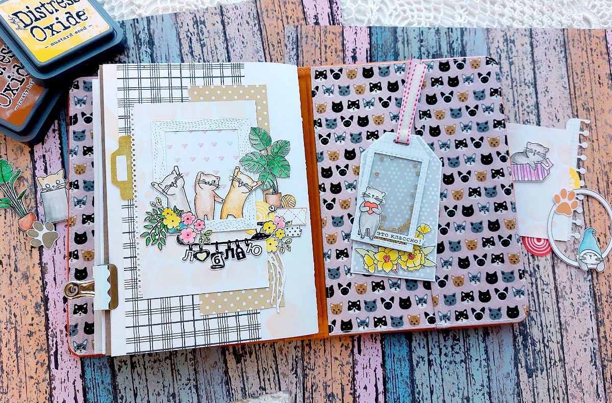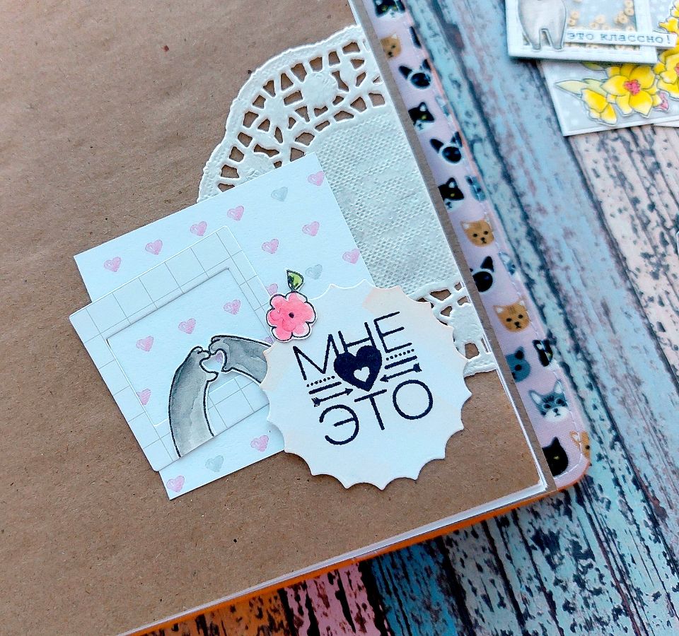 Котики радуют всегда! Поэтому сегодня котики из Набора штампов «Без кота жизнь не та» поделились вдохновением и поселились в задорном мидори-блокноте.