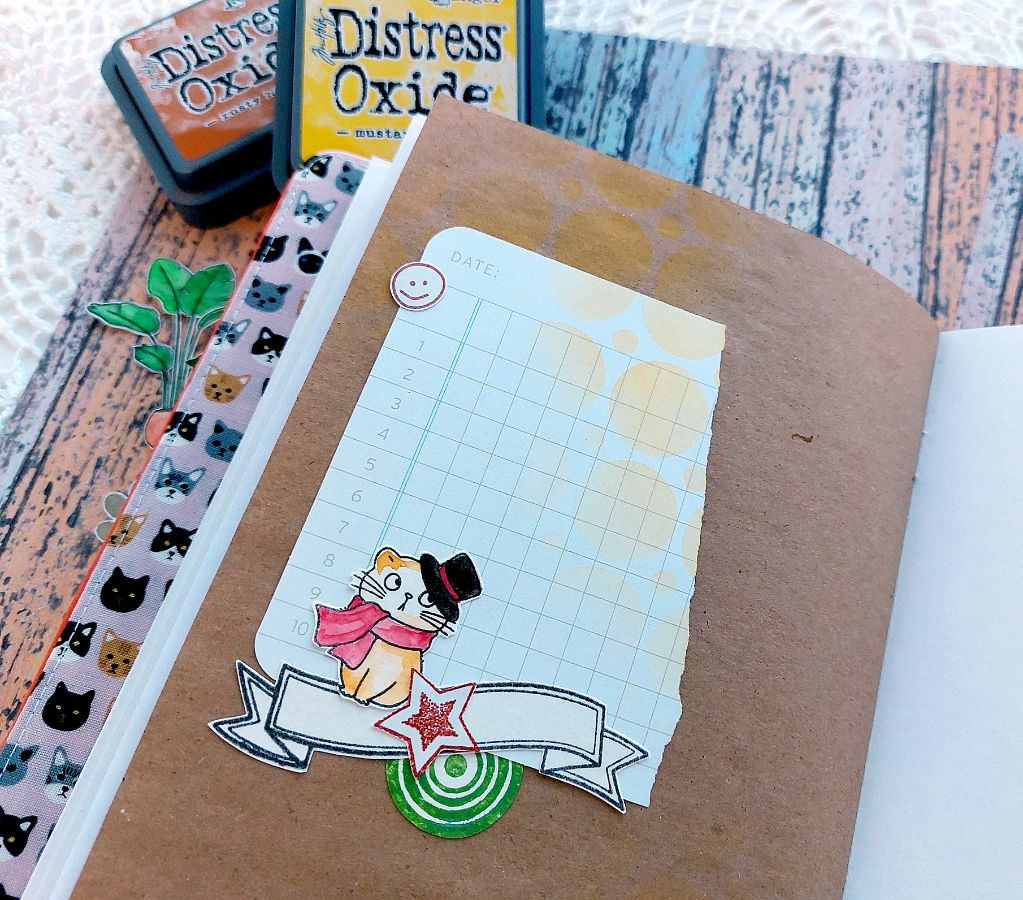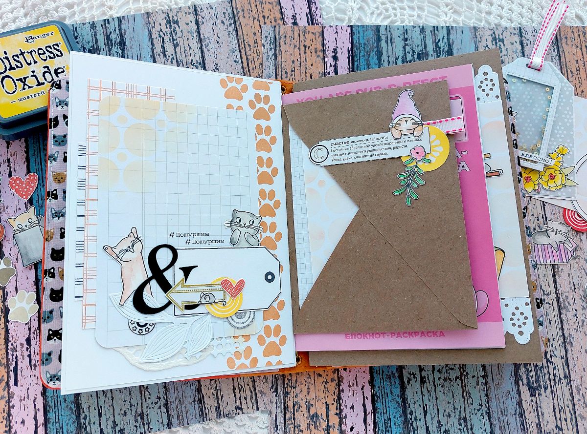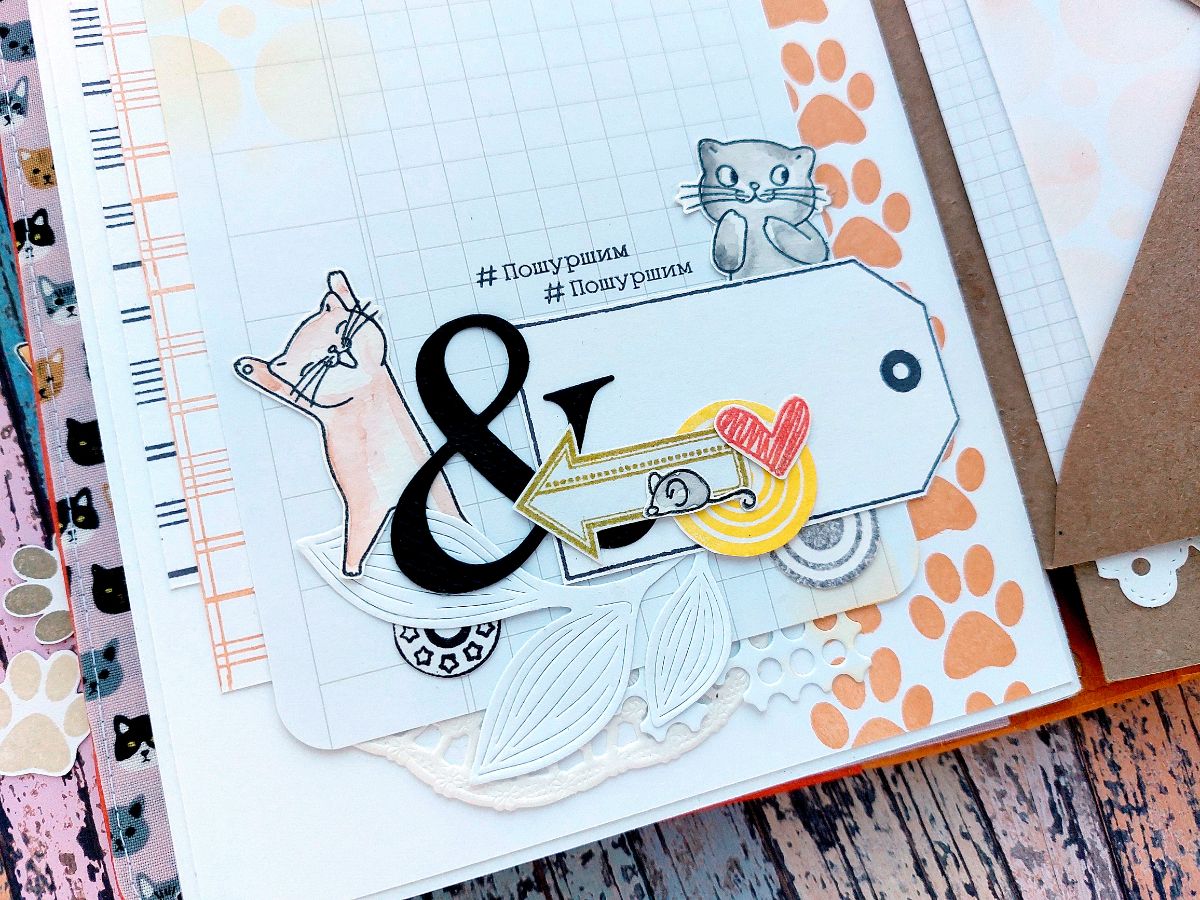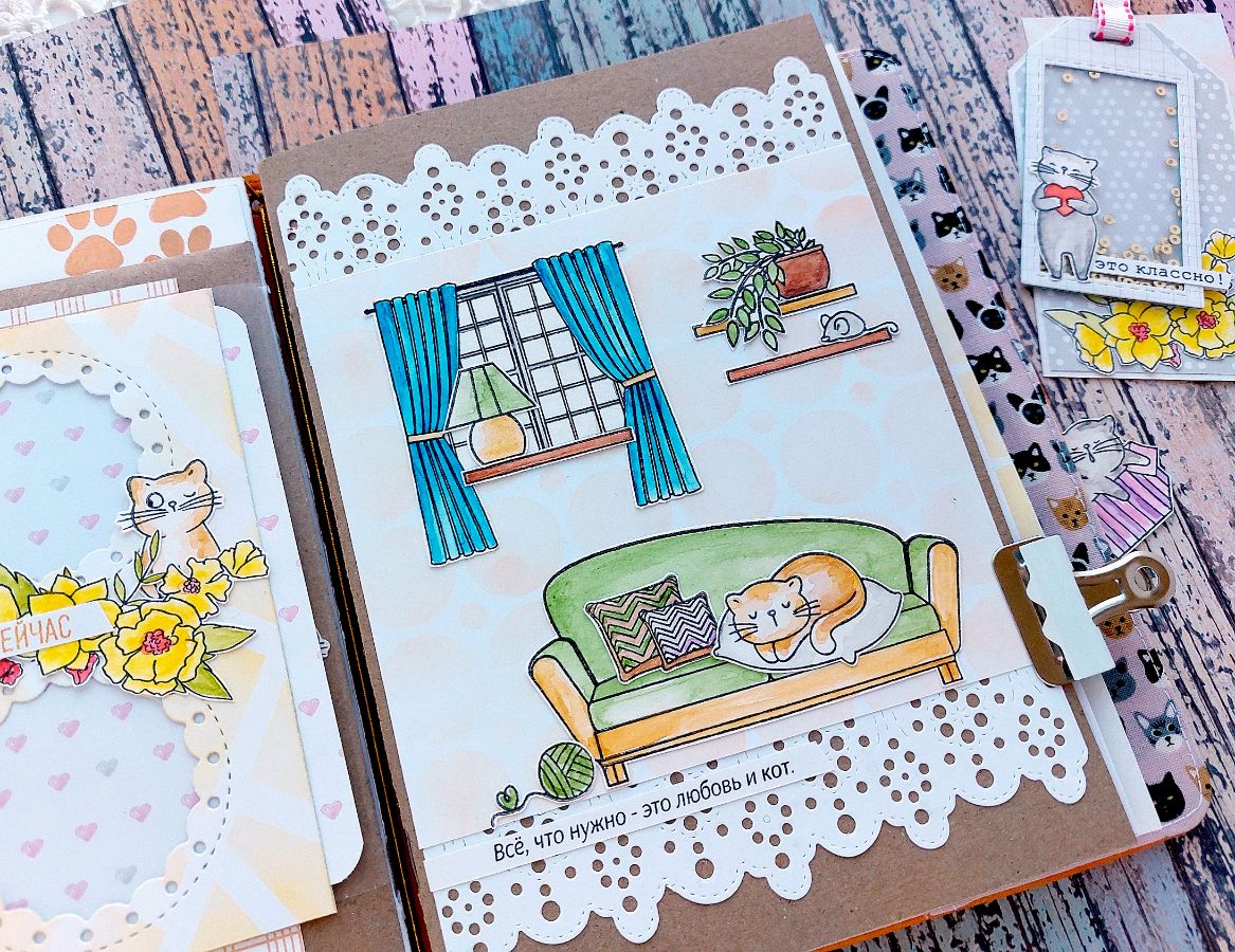 Котики радуют всегда! Поэтому сегодня котики из Набора штампов «Без кота жизнь не та» поделились вдохновением и поселились в задорном мидори-блокноте.